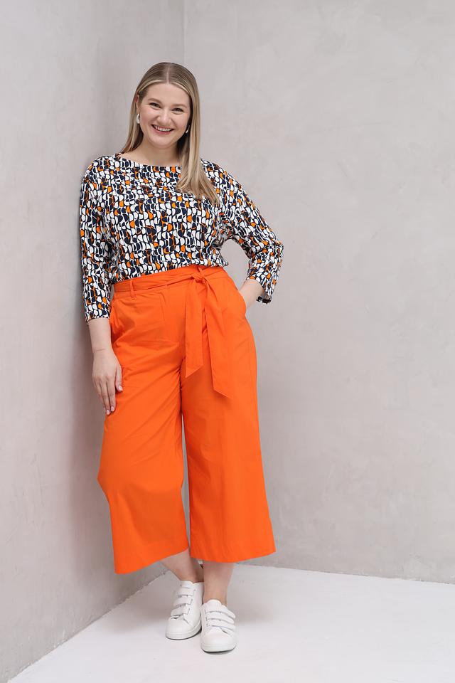Представляем стильные брюки-кюлоты от бренда Samoon. Эта модель выполнена в ярком оранжевом цвете, который добавит свежести и оригинальности вашему образу.