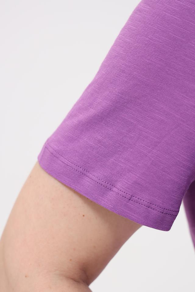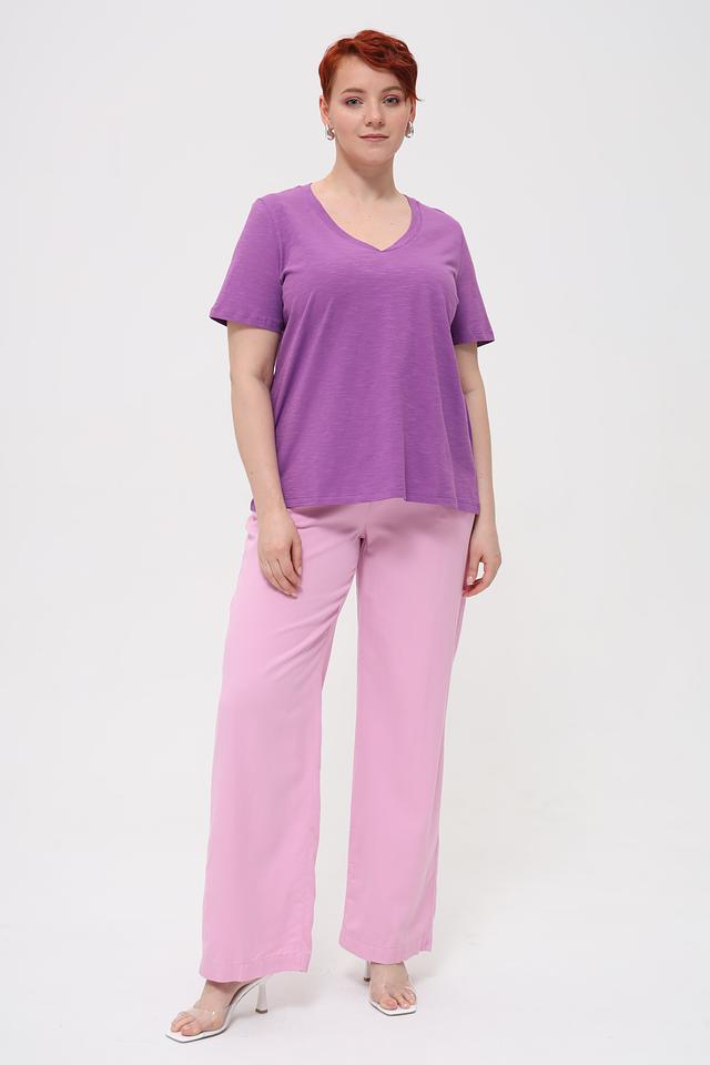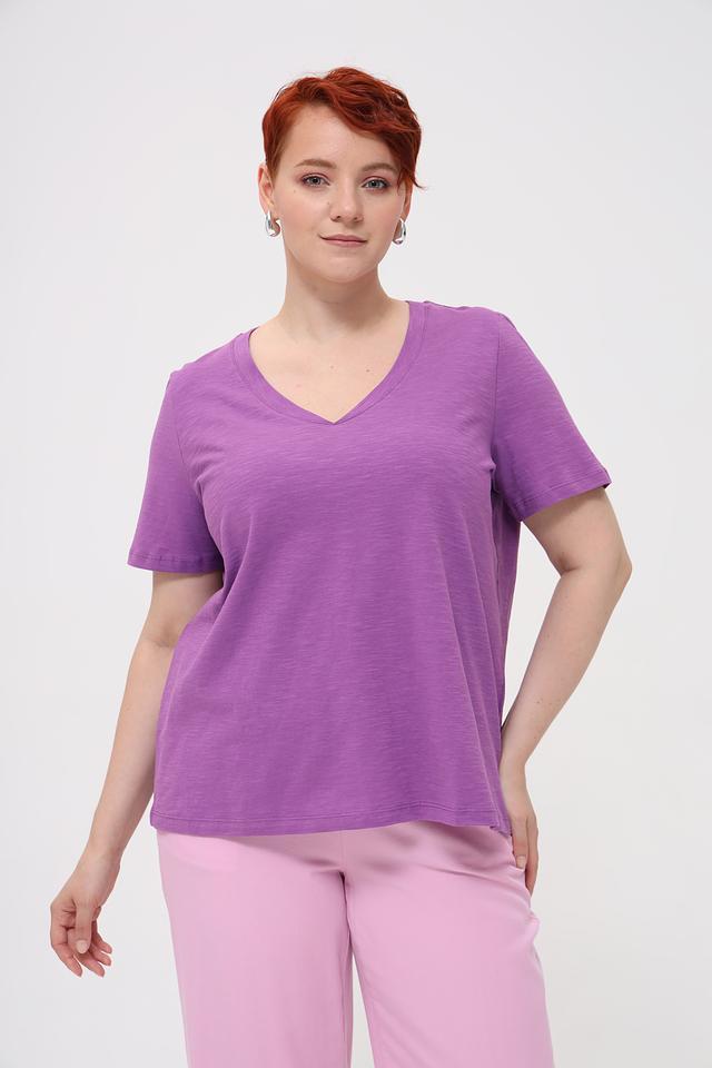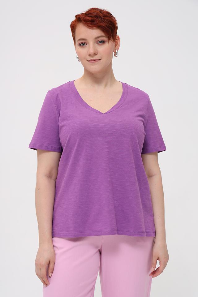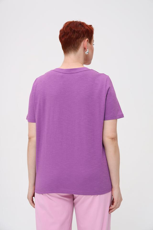 Лиловый цвет футболки придаёт образу нежность и оригинальность. Она прекрасно сочетается с джинсами, брюками, юбками и шортами, позволяя создавать разнообразные стильные образы. Эта футболка станет незаменимой вещью в вашем повседневном гардеробе.