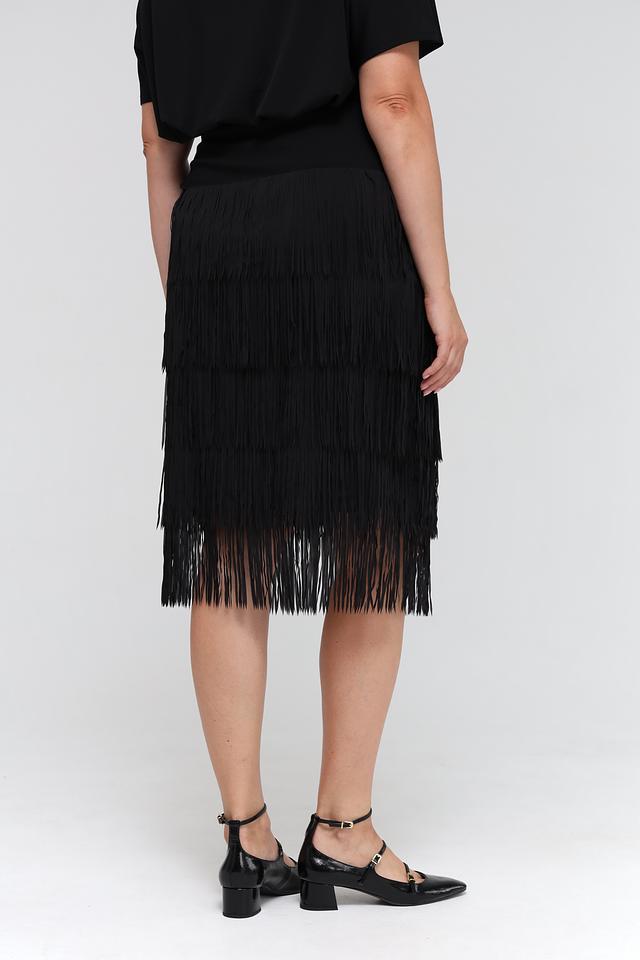 Чёрная юбка Samoon с многослойной бахромой. Изготовлена из полиэстера с подкладкой из вискозы и эластана, обеспечивающей комфорт и удобство в носке. Состав: полиэстер 95%, Состав_подкладка вискоза 95%, эластан 5%, Состав_подкладка эластан 5%