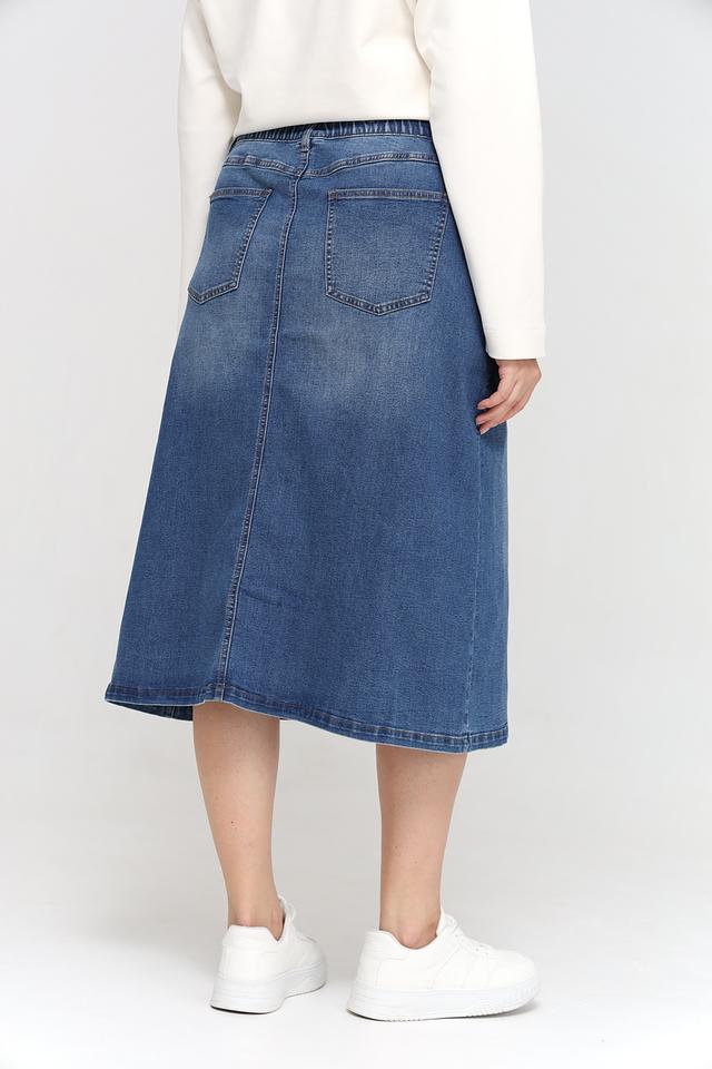 Эта джинсовая юбка от Samoon станет отличным дополнением к вашему гардеробу. Классический синий цвет и миди длина делают ее универсальной и подходящей для различных образов.