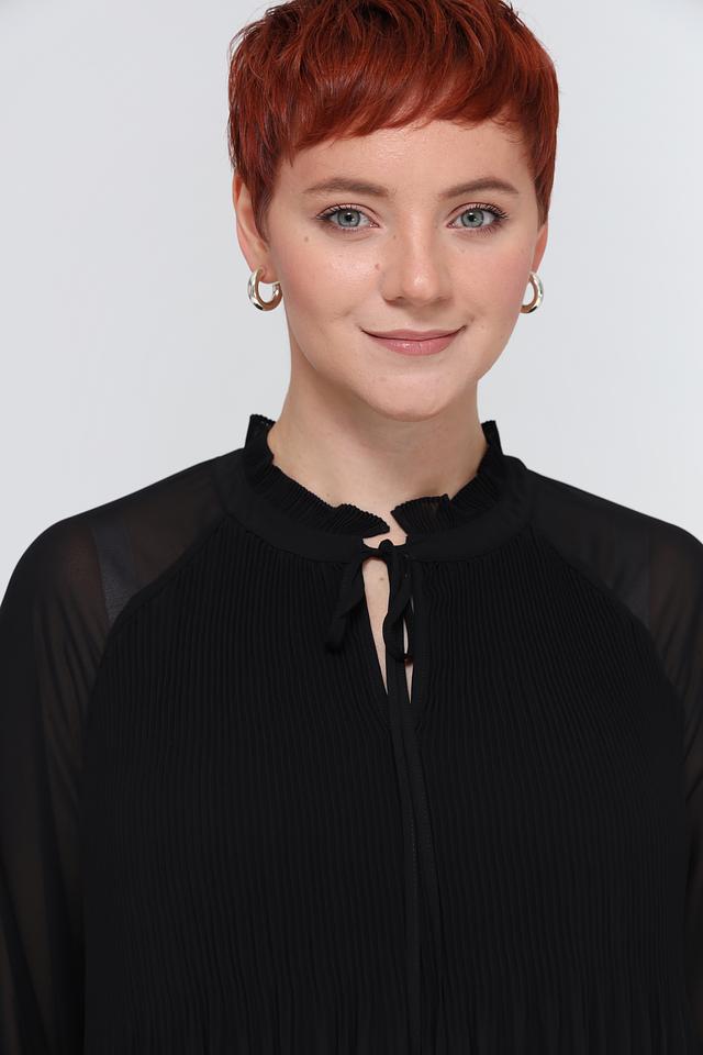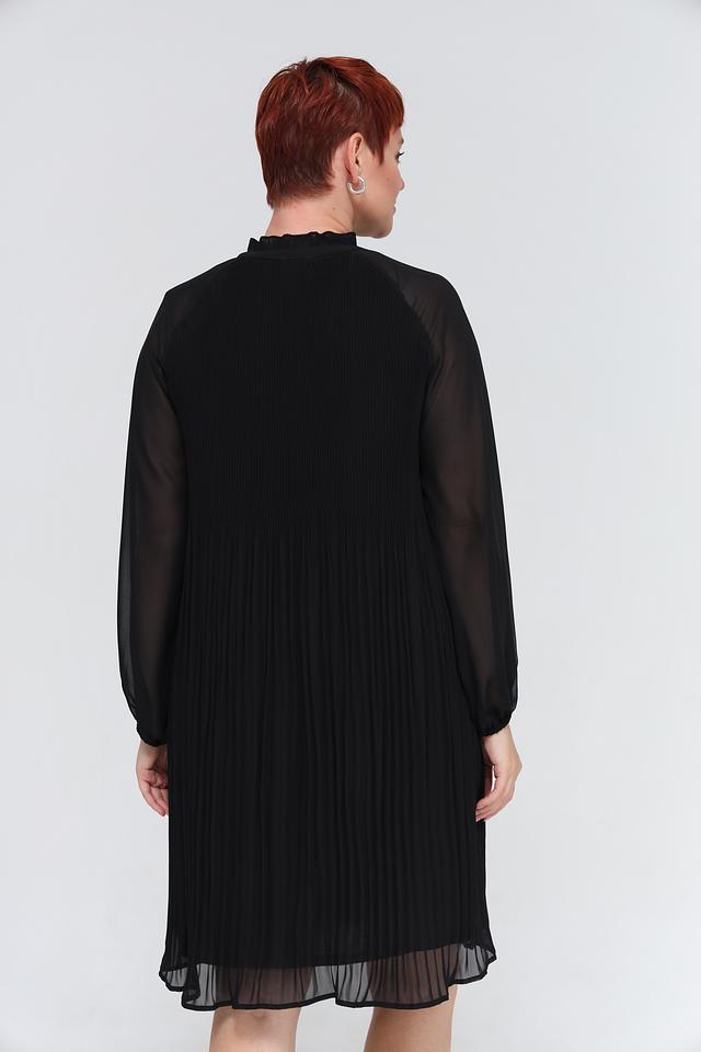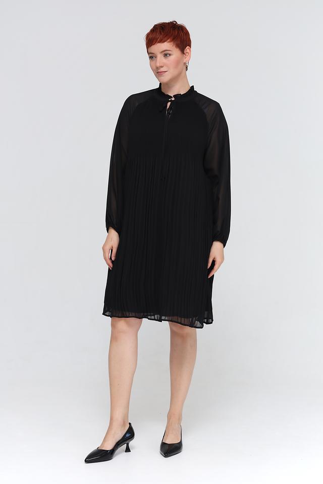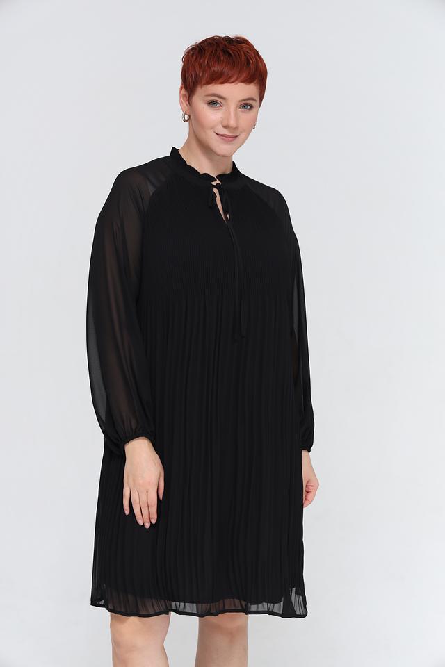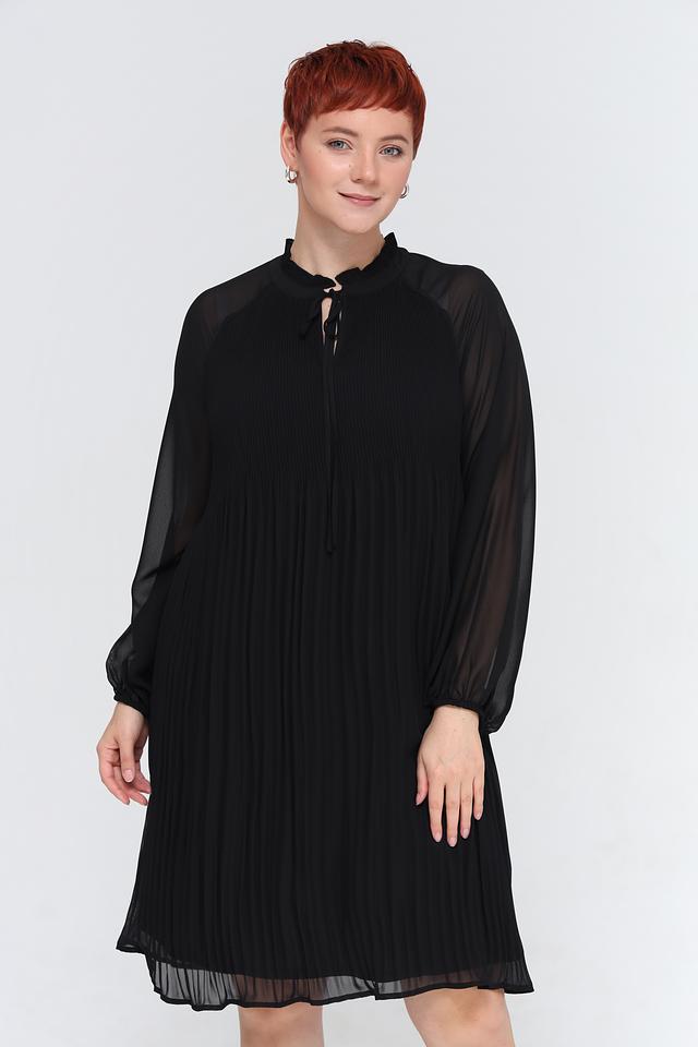 Чёрное платье от Samoon – это элегантное и комфортное решение для любого случая. Платье выполнено из полиэстера с плиссировкой и полупрозрачными рукавами, а также имеет оригинальный вырез с завязками. Состав: полиэстер 100%