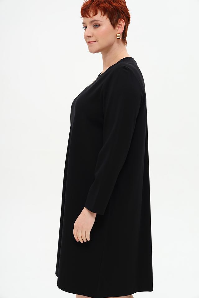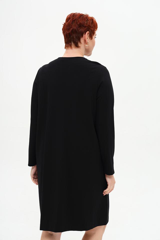 Чёрное платье Samoon с длинным рукавом и оригинальным вырезом на горловине. Выполнено из мягкой вискозы с добавлением полиамида и эластана для комфорта и хорошей посадки. Состав: вискоза 60%, полиамид 35%, эластан 5%