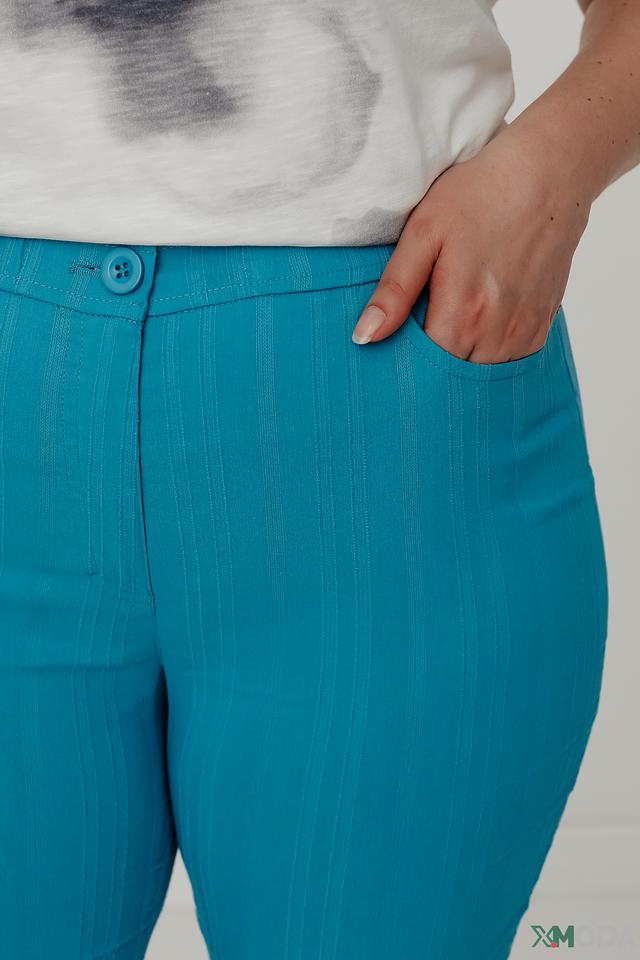 Женские брюки Samoon бирюзового цвета — стильное и комфортное решение для создания повседневных образов. Модель выполнена из текстурированной ткани с вертикальной полоской и дополнена удобными карманами. Состав: хлопок 73%, полиамид 22%, эластан 5%