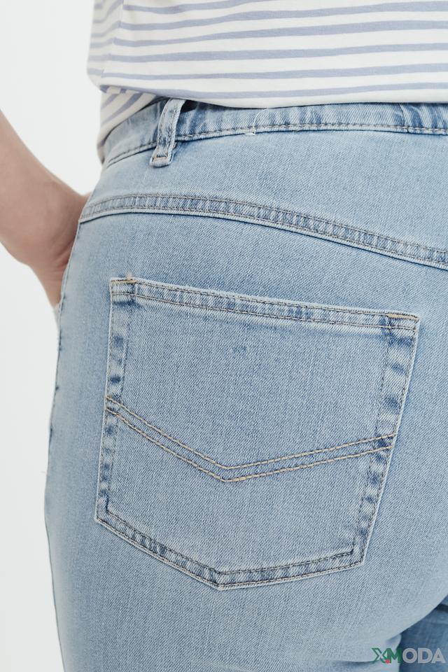 Женские джинсы Samoon голубого цвета с высокой посадкой и прямым кроем. Модель выполнена из хлопка с добавлением переработанного хлопка и эластана, что обеспечивает комфорт и хорошую посадку по фигуре. Состав: хлопок 62%, переработ.хлопок 29%, эластомультиэстер 7%, эластан 2%