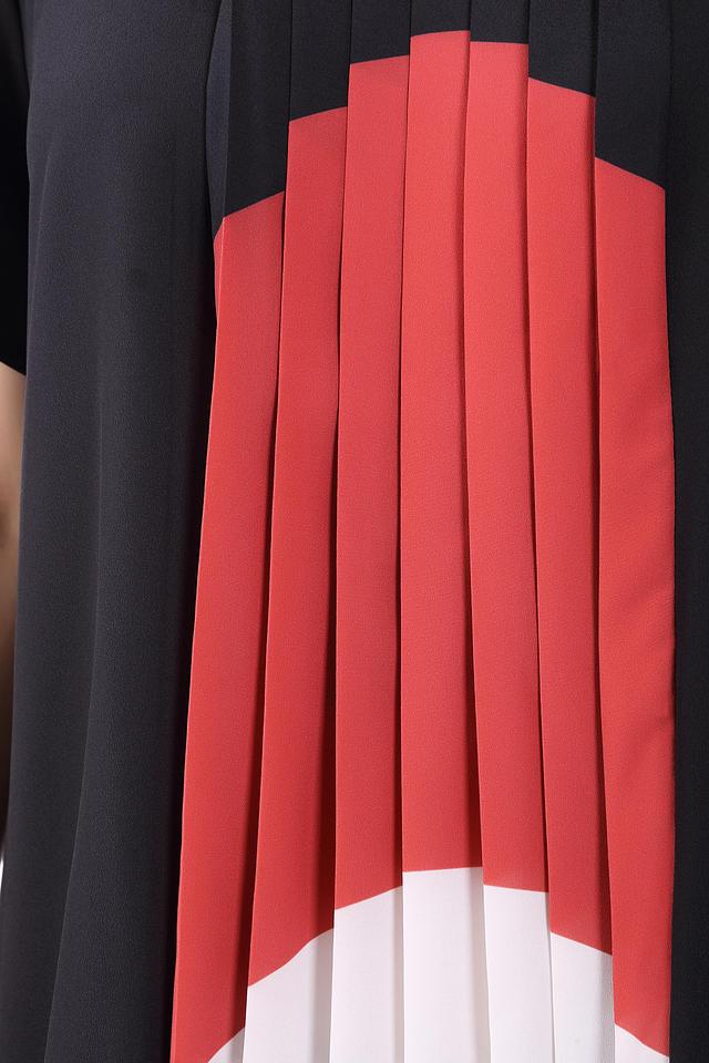 Эта стильная блуза от Samoon станет отличным дополнением к вашему гардеробу. Блуза выполнена в чёрном цвете и украшена вертикальными складками-плиссе на передней части, создающими эффектный визуальный акцент.
