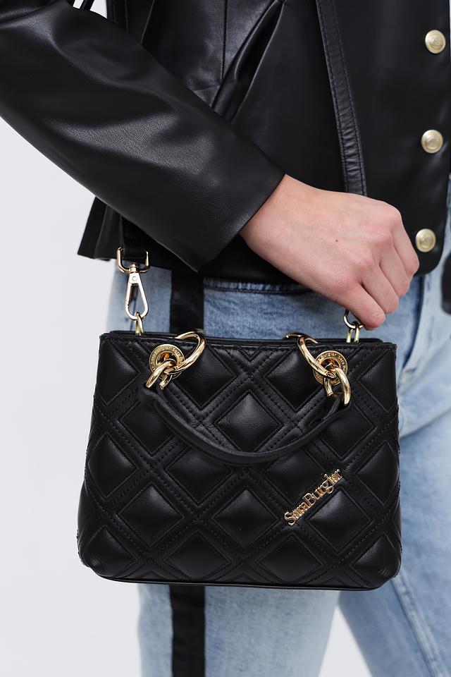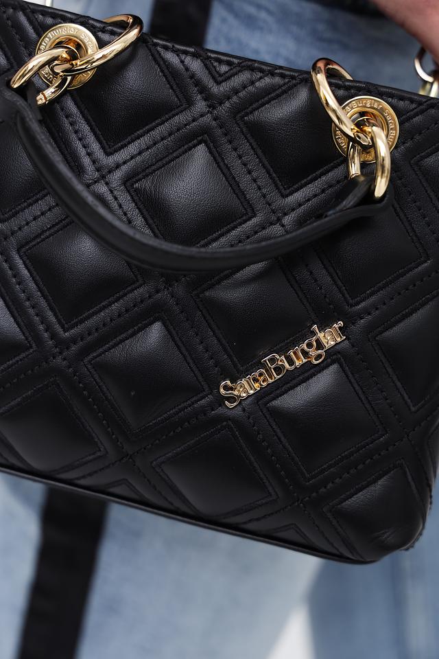 Чёрная сумка Sara Burglar – это стильный аксессуар из 100% кожи с эффектной стеганой текстурой и золотистой фурнитурой. Модель оснащена двумя ручками и регулируемым плечевым ремнем для удобного ношения. Состав: кожа 100%