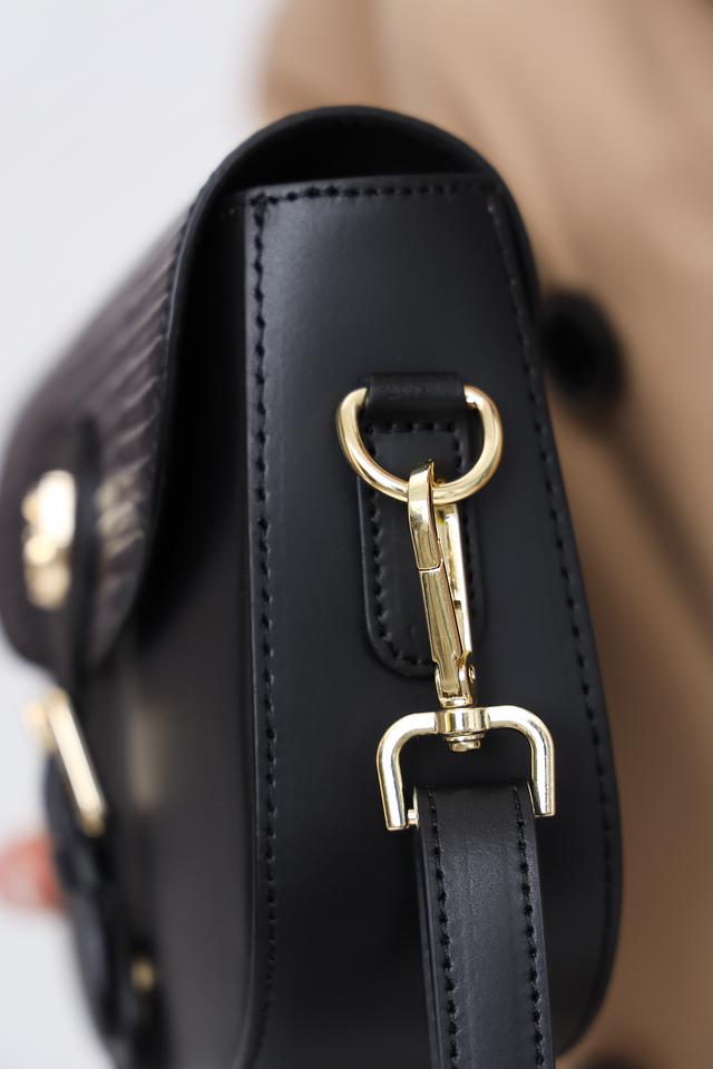 Сумка имеет компактный размер и удобную форму, идеально подходящую для повседневного использования. Текстурированная поверхность придает ей особый шарм, а золотистая фурнитура добавляет элегантности.