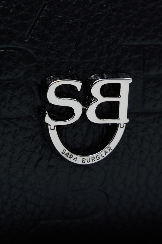 Эта элегантная сумка от Sara Burglar выполнена из высококачественной кожи и имеет насыщенный чёрный цвет. По всей поверхности сумки выполнен рельефный узор из повторяющихся букв "BB", что придает ей узнаваемый и запоминающийся вид.