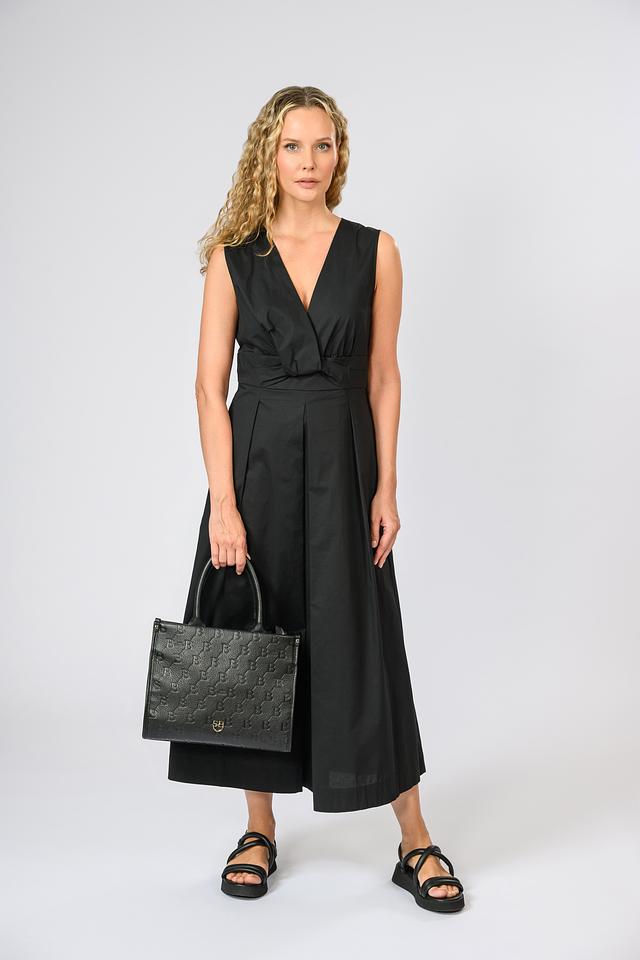 Сумка имеет классический чёрный цвет и украшена тиснением с логотипом бренда, что придает ей особый шарм и узнаваемость. Вместительное основное отделение позволяет удобно разместить все необходимые вещи.