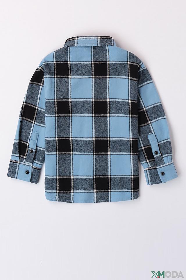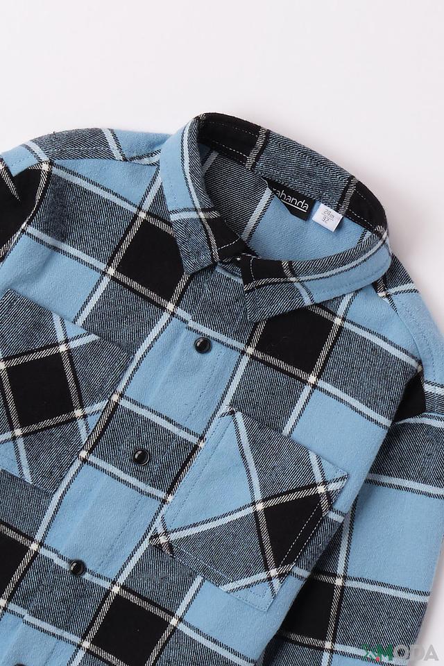 Рубашка имеет длинные рукава, воротник и застёжку на пуговицы. На груди расположен накладной карман, также оформленный в клетку. Модель выполнена из 100% хлопка, что обеспечивает мягкость, комфорт и воздухопроницаемость.
