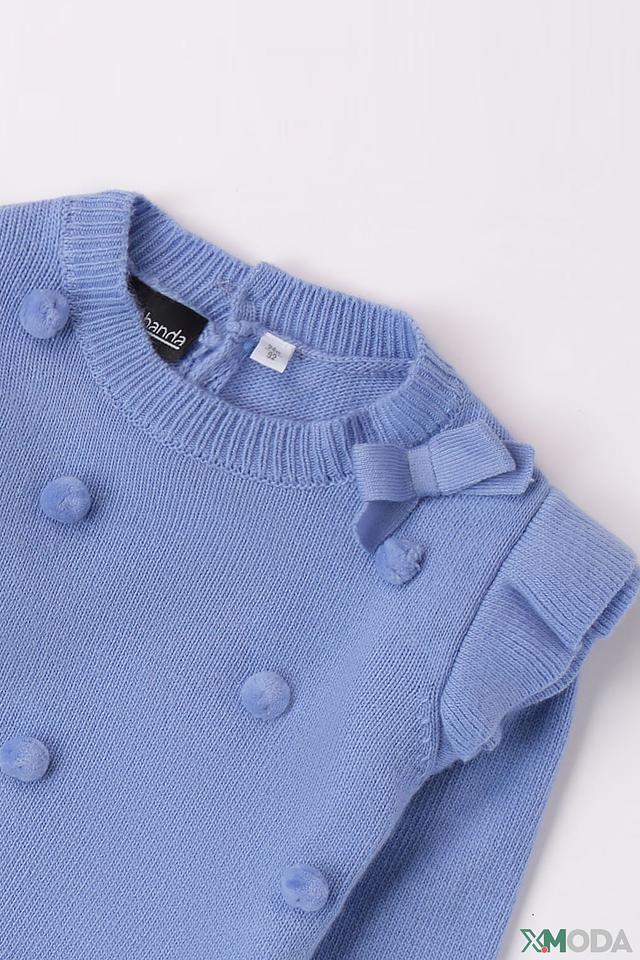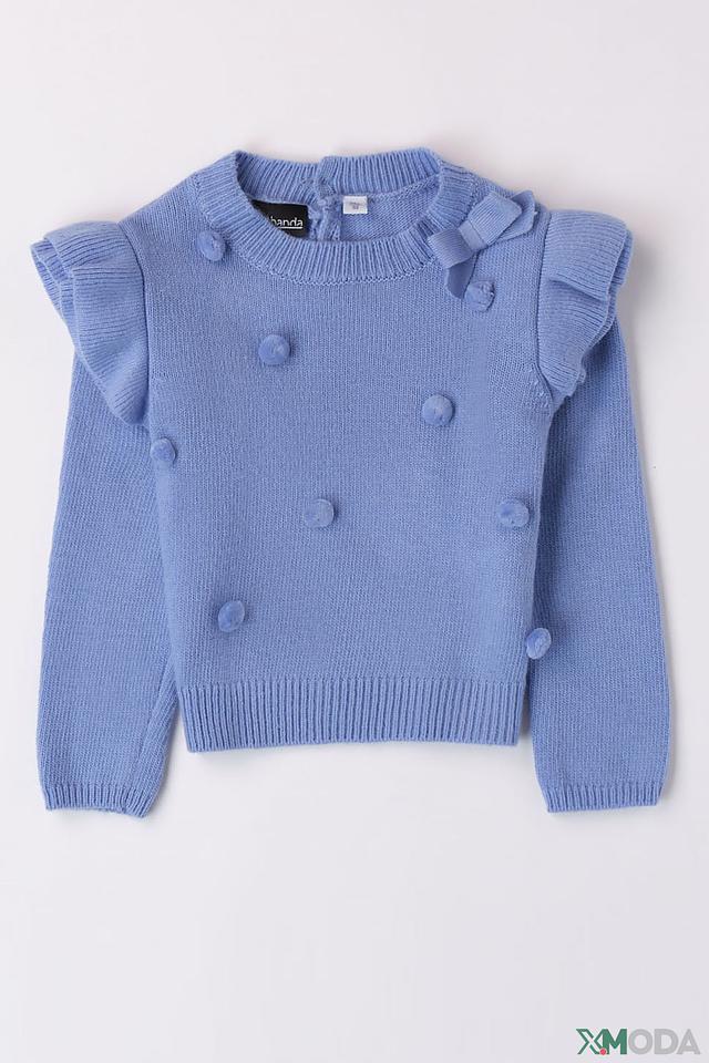 Голубой джемпер от Sarabanda для девочки, украшен декоративными шариками и рюшами. Изготовлен из мягкого и приятного к телу сочетания хлопка, нейлона и шерсти. Состав: хлопок 55%, нейлон 40%, шерсть 5%