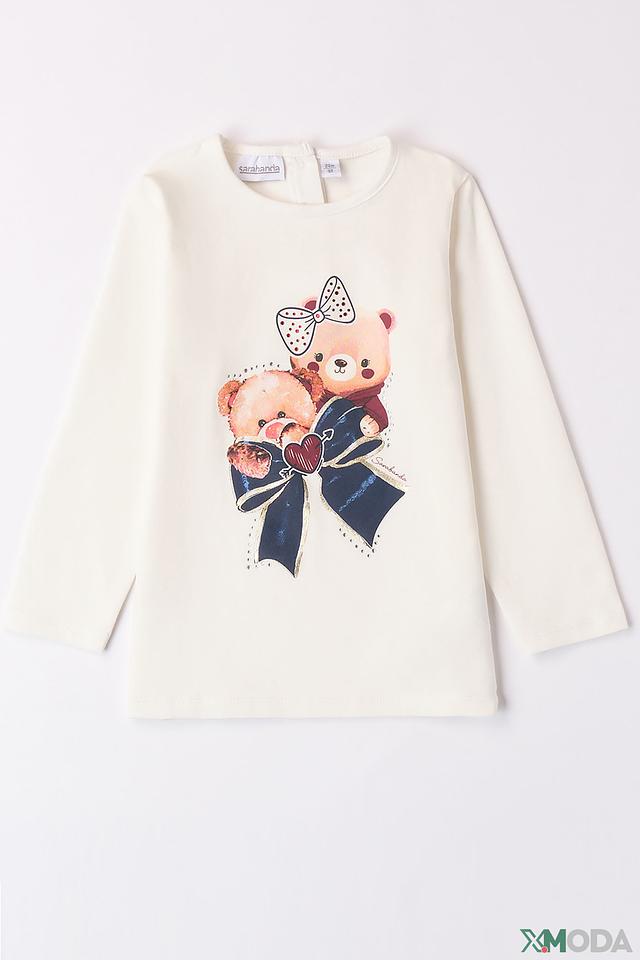 Джемпер Sarabanda для девочки, кремового цвета, с очаровательным принтом мишки. Изготовлен из мягкого хлопка с добавлением эластана для комфорта и свободы движений. Состав: хлопок 95%, эластан 5%