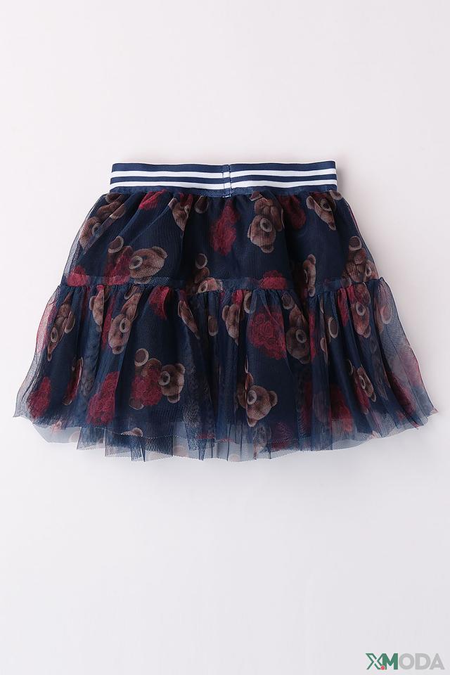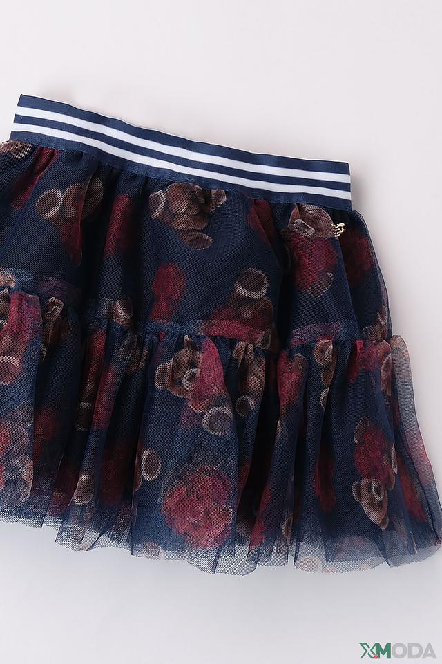 Детская юбка Sarabanda темно-синего цвета, украшена цветочным принтом и эластичным поясом. Модель выполнена из легкого полиэстера и идеально подходит для создания нарядного образа. Состав: полиэстер 100%