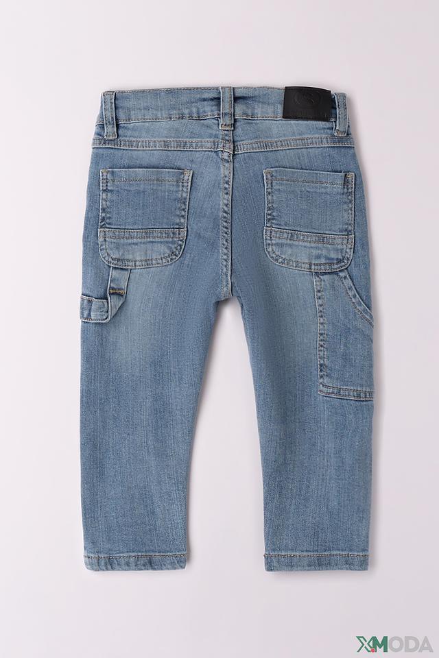 Джинсы имеют удобный крой, который не сковывает движения, и эластичный пояс, обеспечивающий комфортную посадку. Застежка на пуговицу и молнию. На задних карманах предусмотрены дополнительные накладные элементы.
