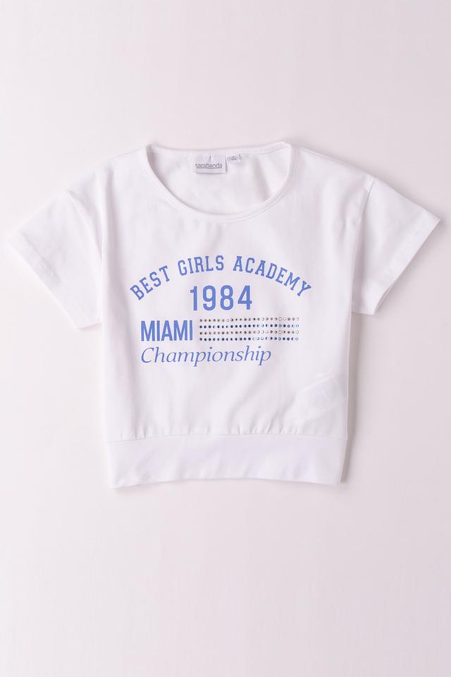 Эта стильная футболка от Sarabanda станет отличным дополнением к гардеробу юной модницы. Футболка выполнена в белом цвете и украшена эффектным принтом с надписью "Best Girls Academy", годом "1984" и названием города "Miami".