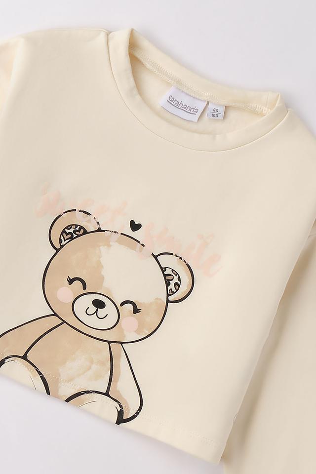 Кремовый джемпер от Sarabanda для девочки с очаровательным принтом мишки. Удобный крой и мягкий хлопок с эластаном обеспечат комфорт и свободу движений. Состав: хлопок 95%, эластан 5%