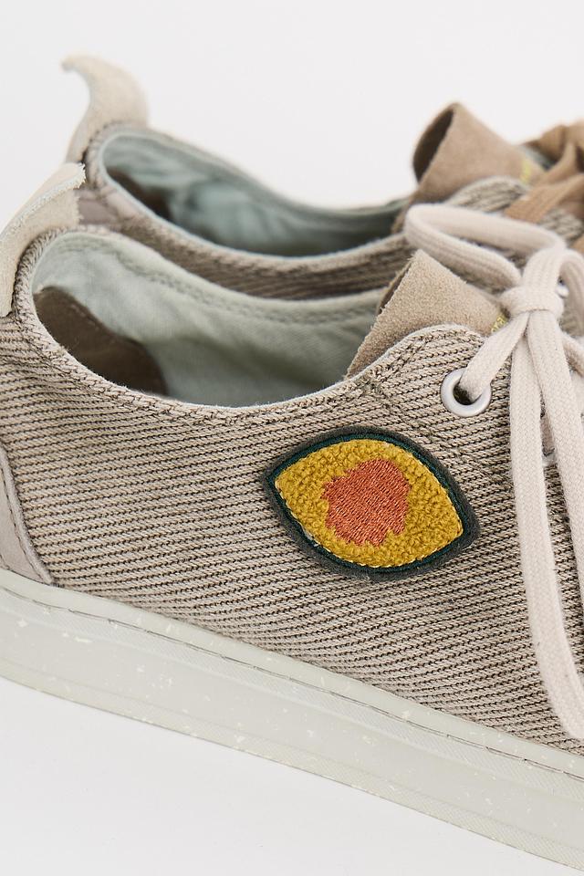 Мужские сникерсы Satorisan бежевого цвета с яркой нашивкой в виде глаза — оригинальная модель для повседневного образа. Выполнены из текстиля и кожи, отличаются удобством и стильным дизайном. Состав: Состав_низ резина 100%, хлопок 80%, Состав_подкладка кожа 50%, Состав_подкладка хлопок 50%, кожа 20%