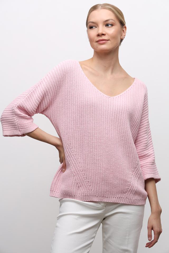 Розовый пуловер SE Stenau с V-образным вырезом и рукавами 3/4 – это стильная и комфортная модель на каждый день. Изготовлен из мягкого сочетания хлопка и полиакрила, обеспечивающего приятные ощущения при носке. Состав: хлопок 50%, полиакрил 50%