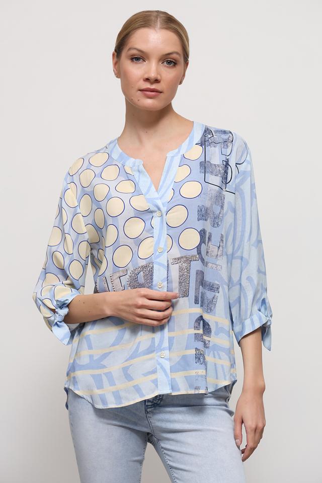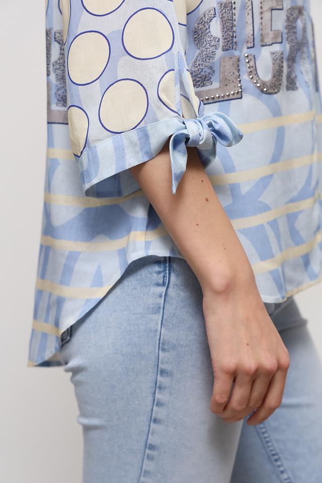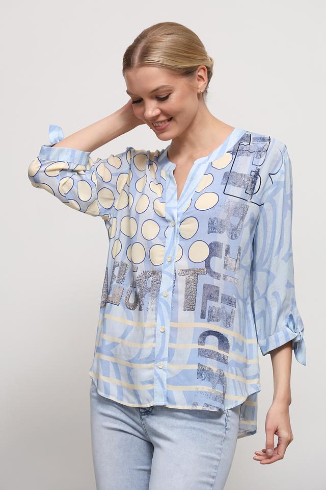 Голубая блуза SE Stenau с оригинальным принтом и рукавами 3/4 станет стильным дополнением к вашему гардеробу. Изготовлена из мягкой вискозы, обеспечивающей комфорт в носке. Состав: вискоза 100%