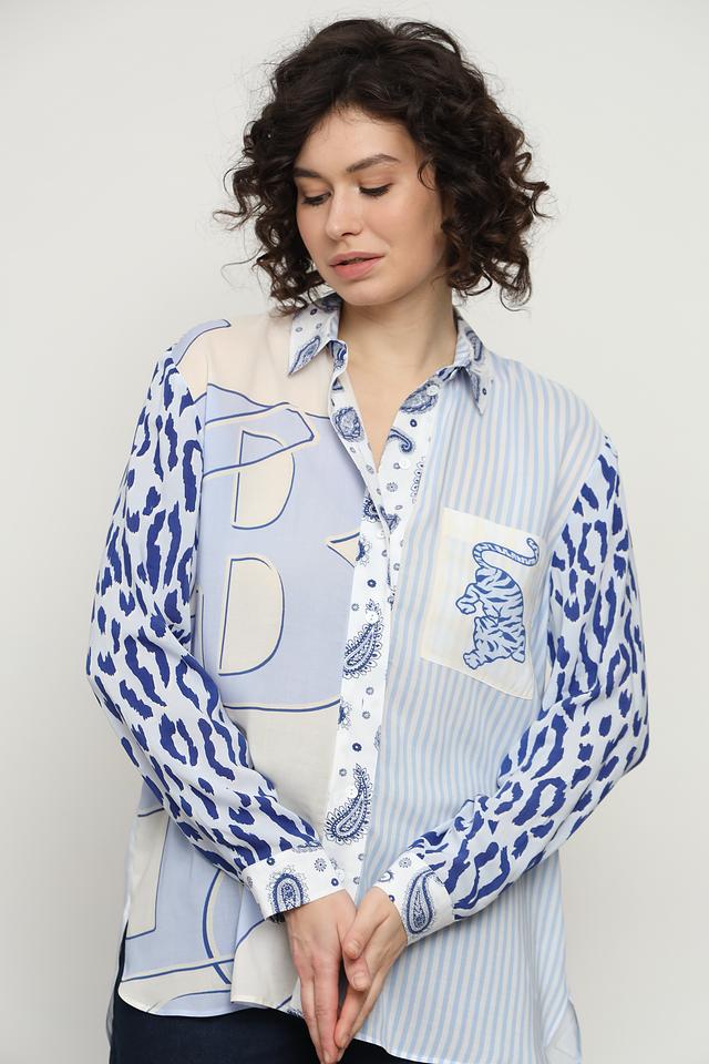 Женская рубашка SE Stenau голубого цвета с ярким принтом и оригинальным дизайном. Изготовлена из мягкой вискозы, обеспечивающей комфорт в носке. Отличный выбор для создания стильного и запоминающегося образа. Состав: вискоза 100%