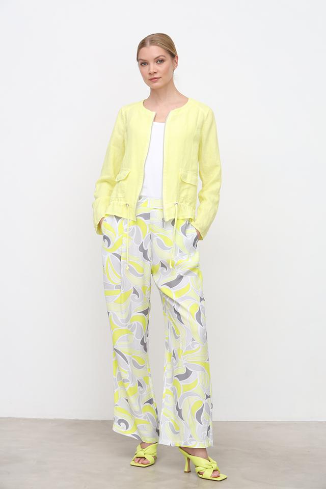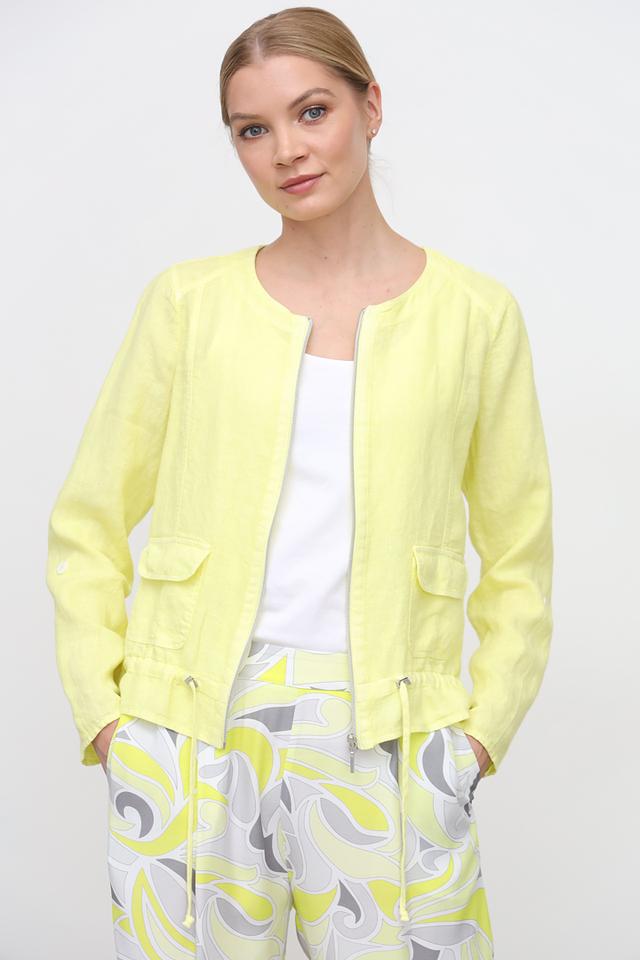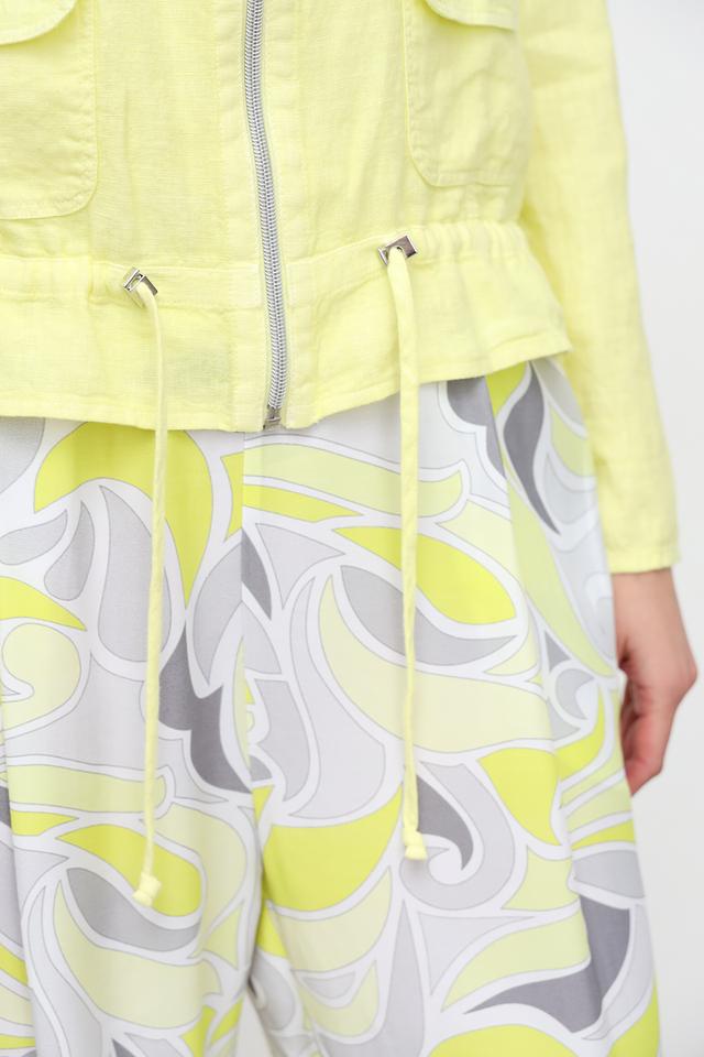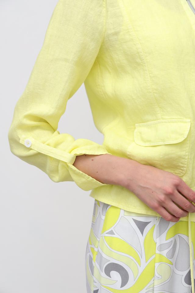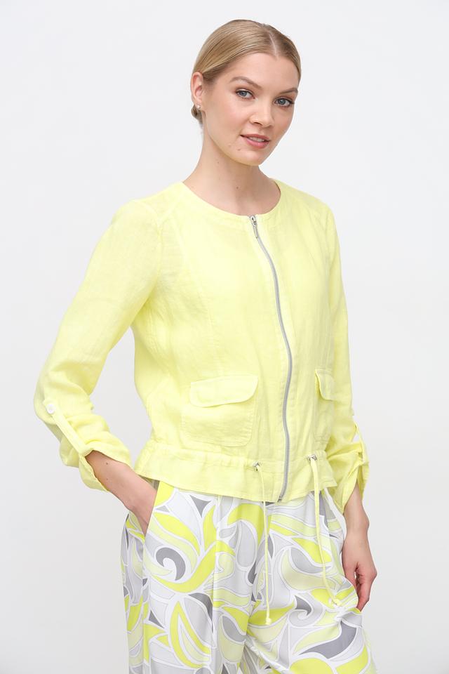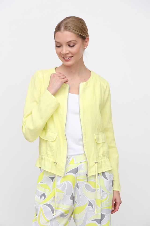 Льняной жакет SE Stenau лаймового цвета – стильное и комфортное решение для создания модных образов. Модель застегивается на молнию, имеет боковые карманы и сборку по низу, что придает ей изящный силуэт. Состав: лен 100%