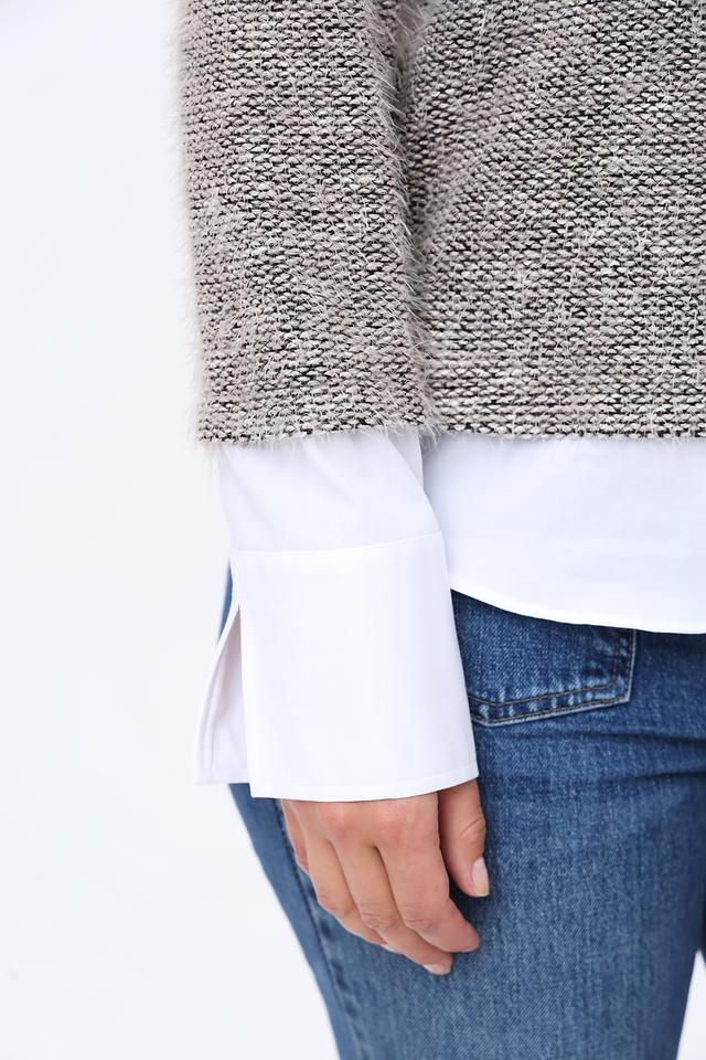 Состав ткани включает полиакрил, хлопок, полиамид и полиэстер, что обеспечивает изделию прочность, износостойкость и простоту в уходе. Блуза прекрасно сочетается с джинсами, брюками или юбками, создавая стильный и непринужденный образ.