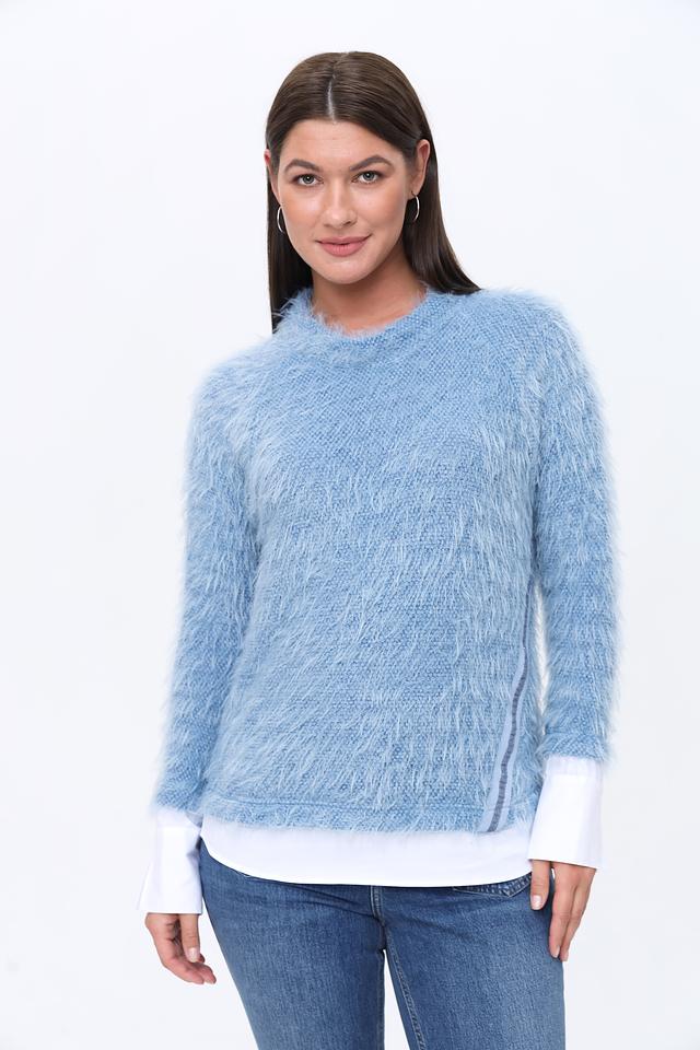 Женский пуловер SE Stenau голубого цвета выполнен из мягкой "пушистой" пряжи. Модель имеет округлый вырез горловины и свободный крой, идеально подходит для создания уютных образов. Состав: полиамид 60%, хлопок 28%, полиэстер 10%, эластан 2%