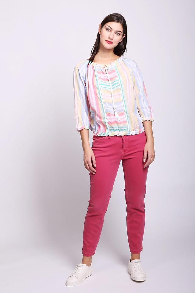 Низ блузы собран на резинку, что придает ей легкий и воздушный вид. Эта модель идеально подойдет для создания повседневных образов в стиле casual. Состав: 100% хлопок.