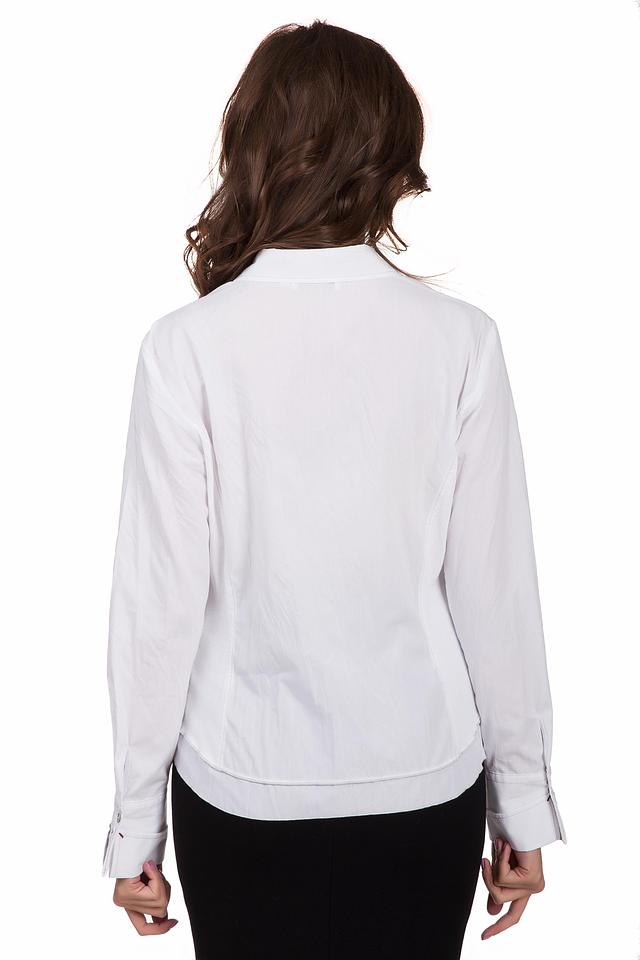 Состав ткани – 65% полиэстер и 35% хлопок. Такое сочетание обеспечивает блузе легкость, прочность и простоту в уходе. Она не мнется и хорошо сохраняет форму.