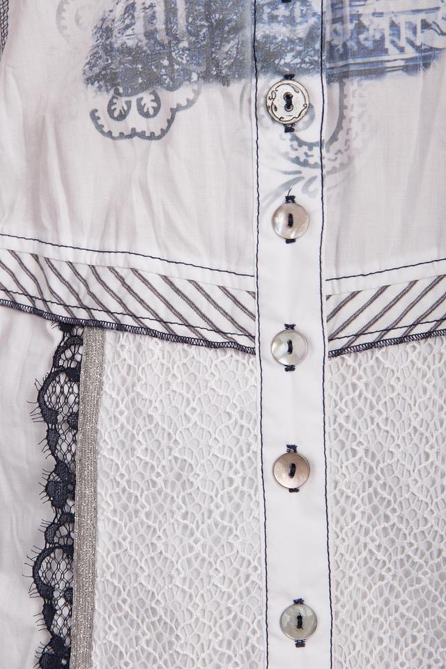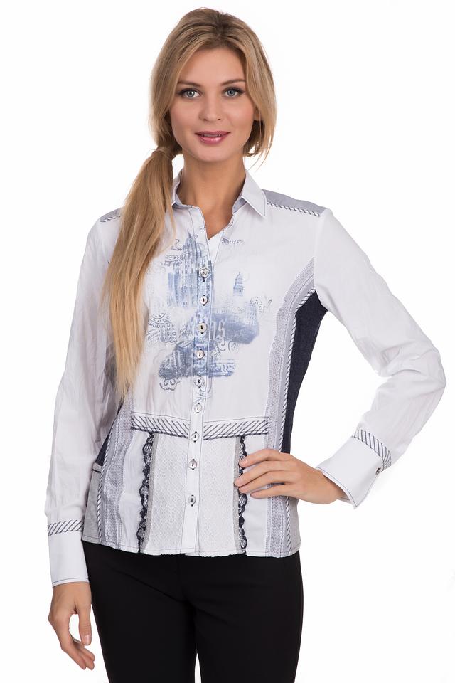 Белая блуза SE Stenau с оригинальным городским принтом и отделкой кружевом. Модель с длинным рукавом и застежкой на пуговицы станет стильным дополнением к вашему гардеробу. Состав: полиэстер 65%, хлопок 35%