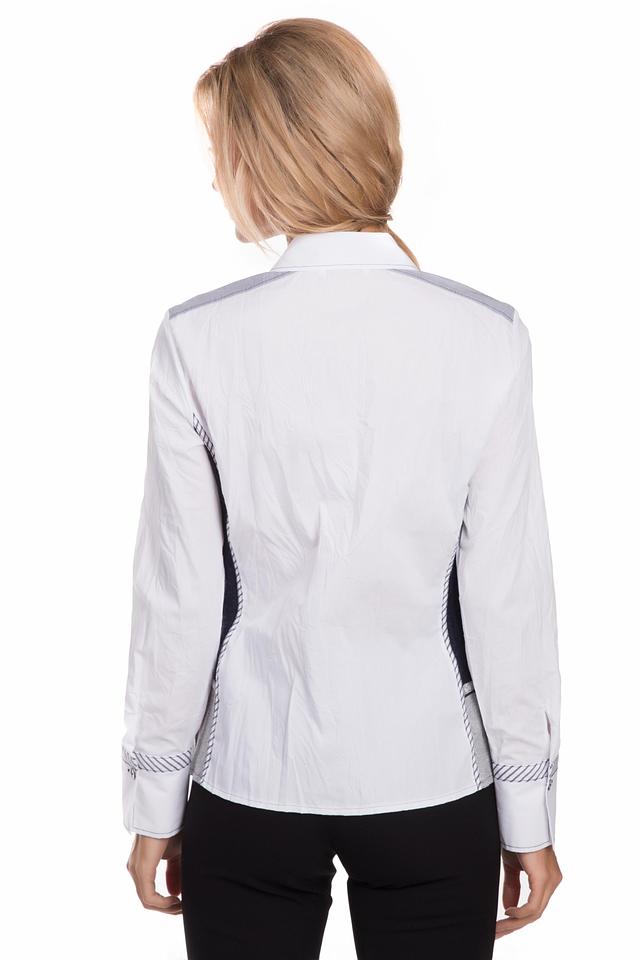 Блуза выполнена из смесовой ткани, сочетающей в себе 65% полиэстер и 35% хлопок, что обеспечивает комфорт в носке и простоту ухода. Детализированный дизайн включает в себя отделку кружевом по центру планки и на манжетах рукавов.