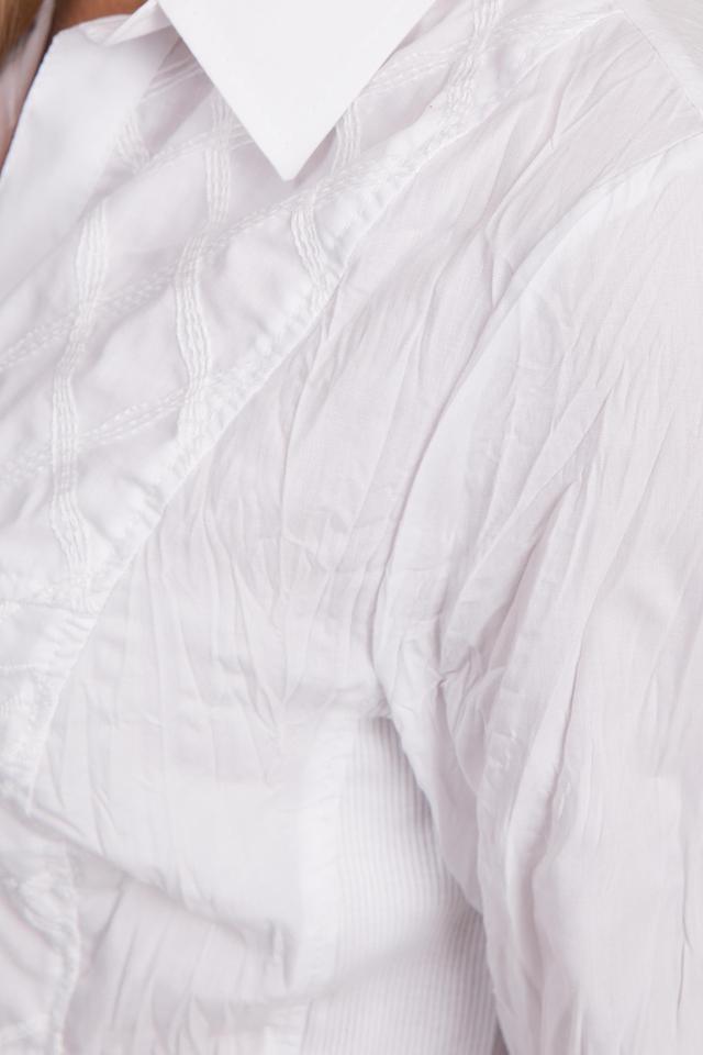 Блуза выполнена из сочетания полиэстера (65%) и хлопка (35%), что обеспечивает комфорт в носке и простоту ухода. Этот материал приятен к телу, хорошо держит форму и не мнется.
