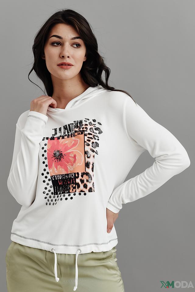Модель имеет удобный крой, длинные рукава и капюшон. Лонгслив изготовлен из высококачественного модала (70%) и полиэстера (30%), что обеспечивает приятные тактильные ощущения, мягкость и долговечность изделия.