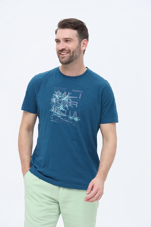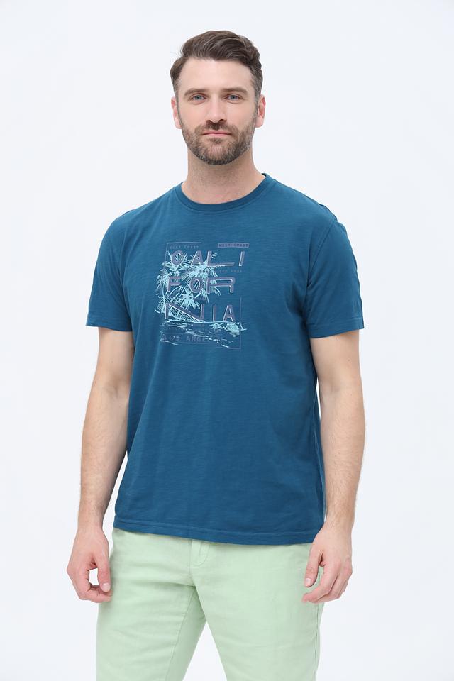 Мужская футболка Sea Barrier бирюзового цвета с оригинальным принтом. Изготовлена из 100% хлопка, обеспечивающего комфорт и воздухопроницаемость. Отличный выбор для повседневного образа. Состав: хлопок 100%