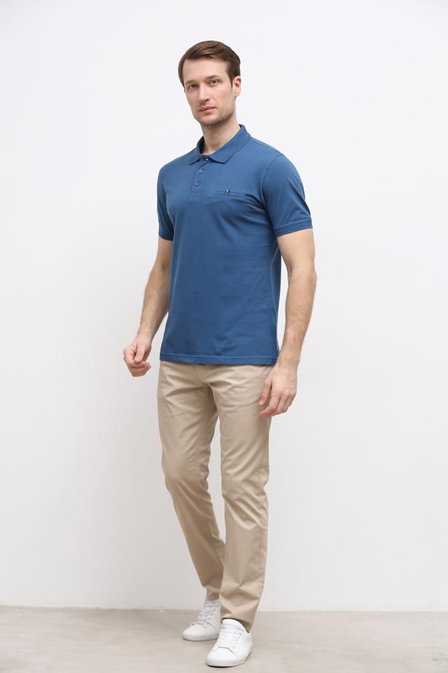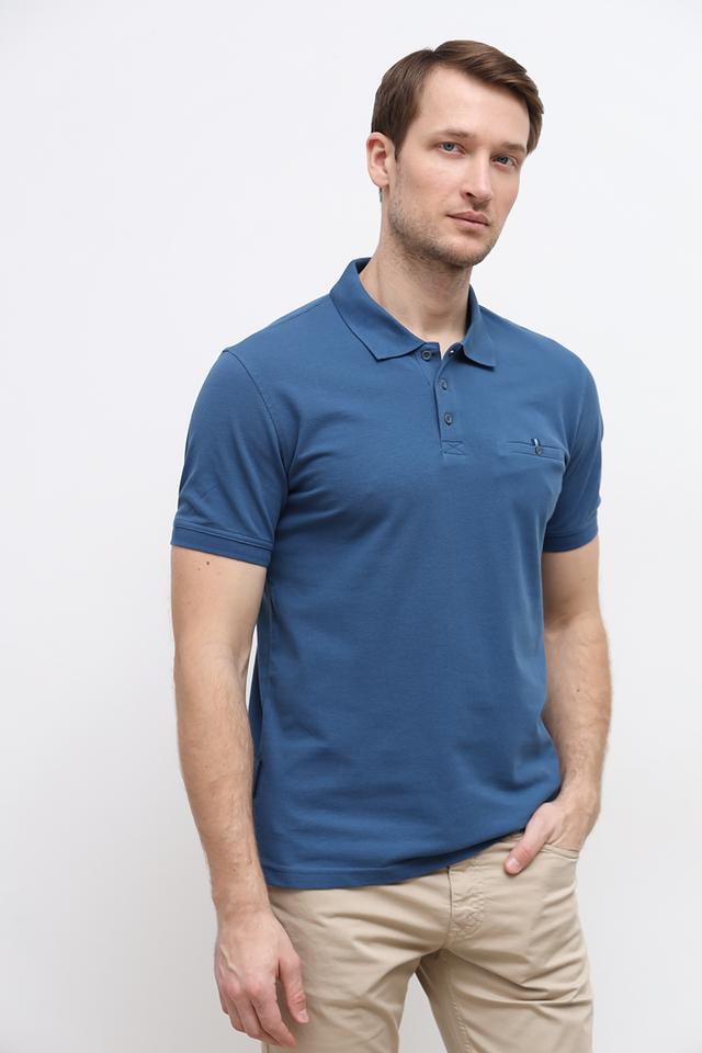 Данная модель имеет короткий рукав и традиционный воротник-поло с застежкой на пуговицы. На груди расположился накладной карман, добавляющий поло функциональности и стиля. Цвет поло – насыщенный синий, который легко сочетается с различными элементами гардероба.