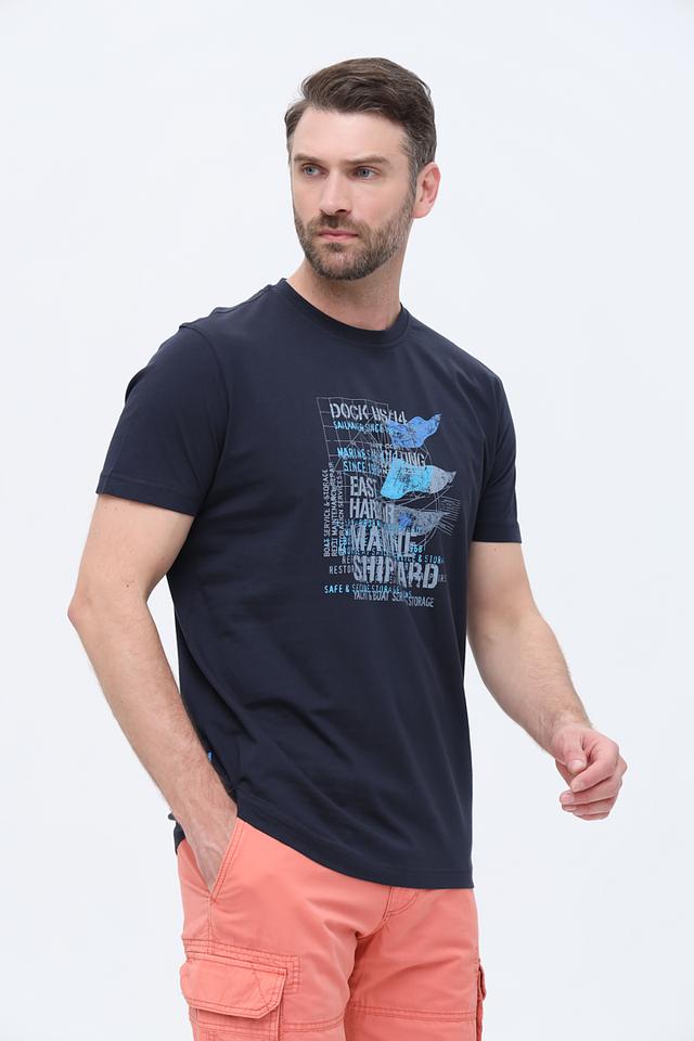 Синяя футболка Sea Barrier с оригинальным принтом в морской тематике. Изготовлена из 100% хлопка, обеспечивающего комфорт и воздухопроницаемость. Отличный выбор для повседневного образа. Состав: хлопок 100%