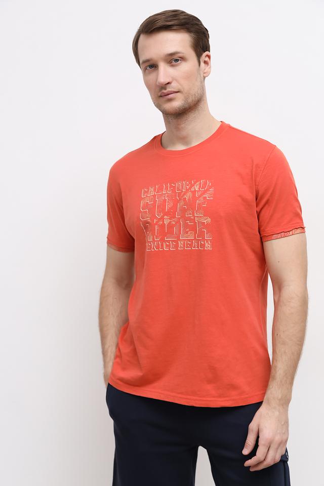 На передней части футболки расположен яркий принт с надписями, добавляющий образу индивидуальность. Классический крой и круглый вырез горловины делают эту футболку универсальной для различных стилей и ситуаций.