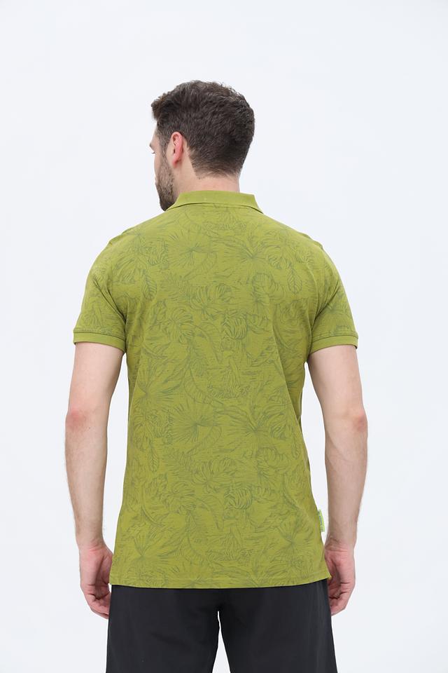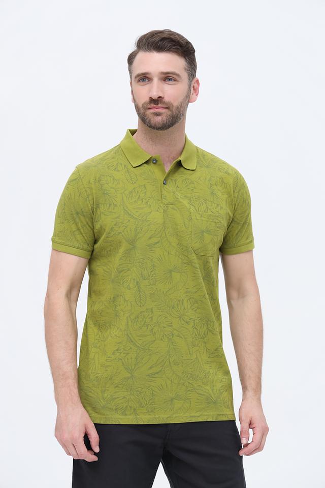 Оливковый цвет и оригинальный тропический принт делают эту модель ярким акцентом в вашем гардеробе. Поло имеет классический крой с короткими рукавами и воротником-поло, что делает его универсальным для различных ситуаций.