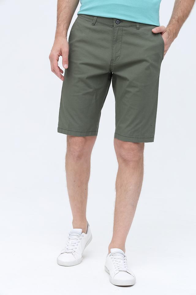 Шорты имеют прямой крой, который подходит для большинства типов фигуры. Классический хаки цвет делает их универсальными и легко сочетаемыми с различными элементами одежды. Застежка на пуговицу и молнию обеспечивает надежную фиксацию.