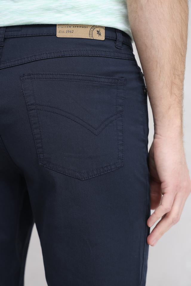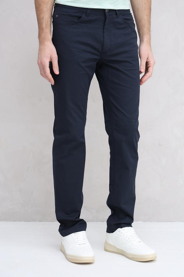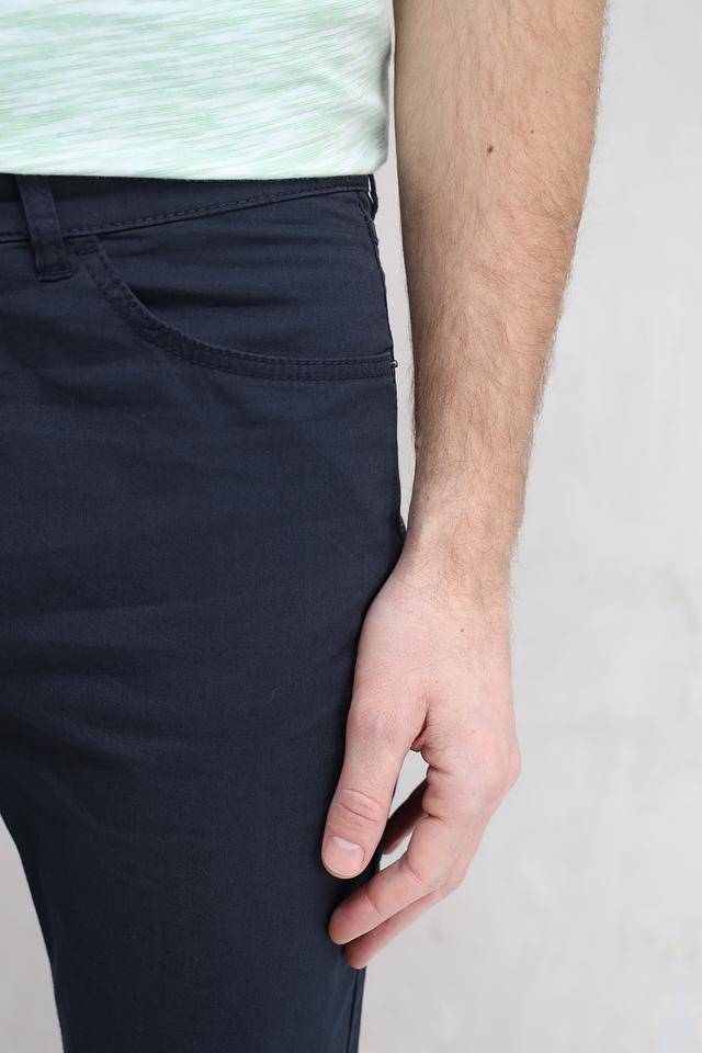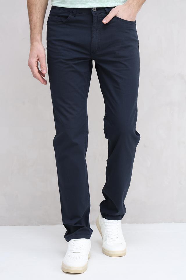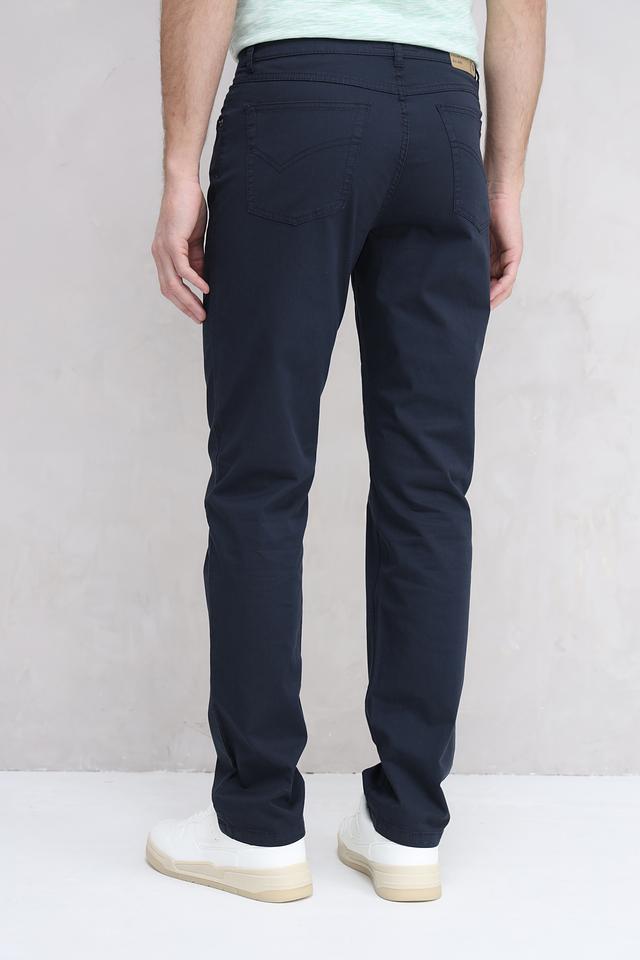 Цвет брюк – насыщенный темно-синий, который легко сочетается с различными элементами гардероба. Застежка на молнию и пуговицу с логотипом бренда. На задних карманах декоративная отстрочка. Состав: хлопок 98%, эластан 2%.