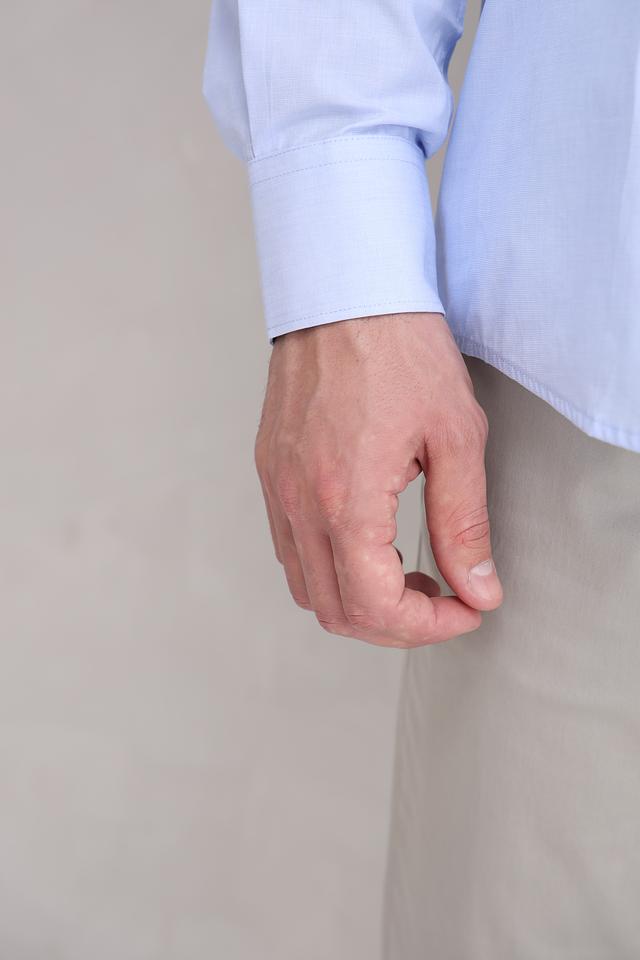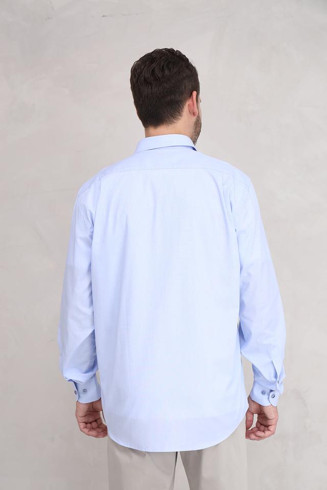Рубашка имеет классический крой с длинными рукавами и стандартным воротником. Застежка на пуговицы по всей длине. Особенности кроя обеспечивают свободу движений и удобную посадку по фигуре.