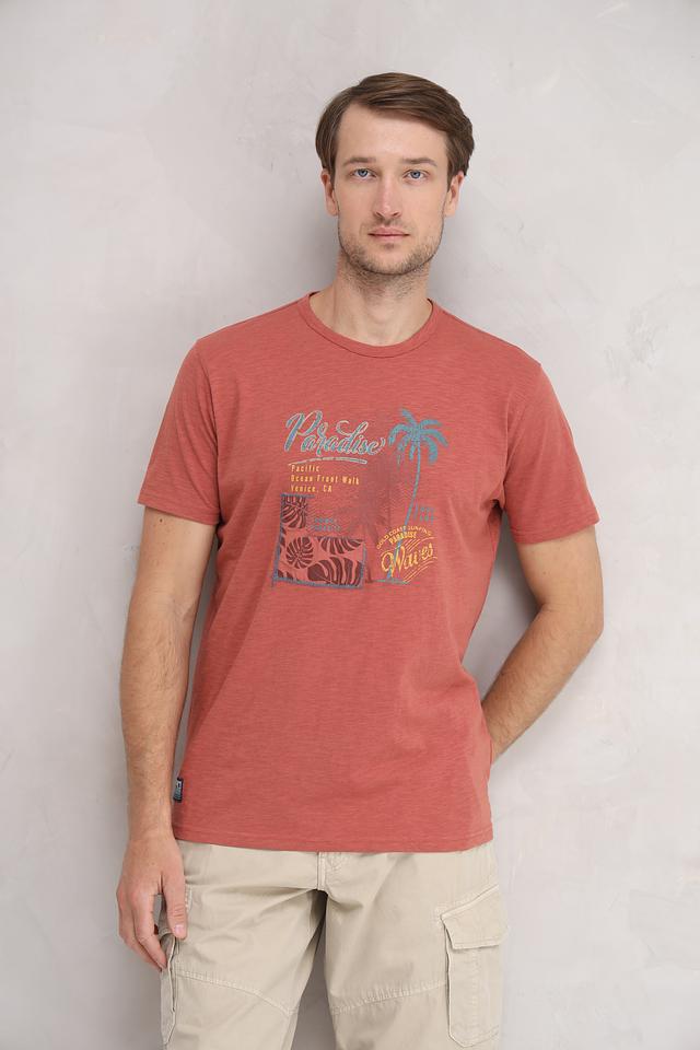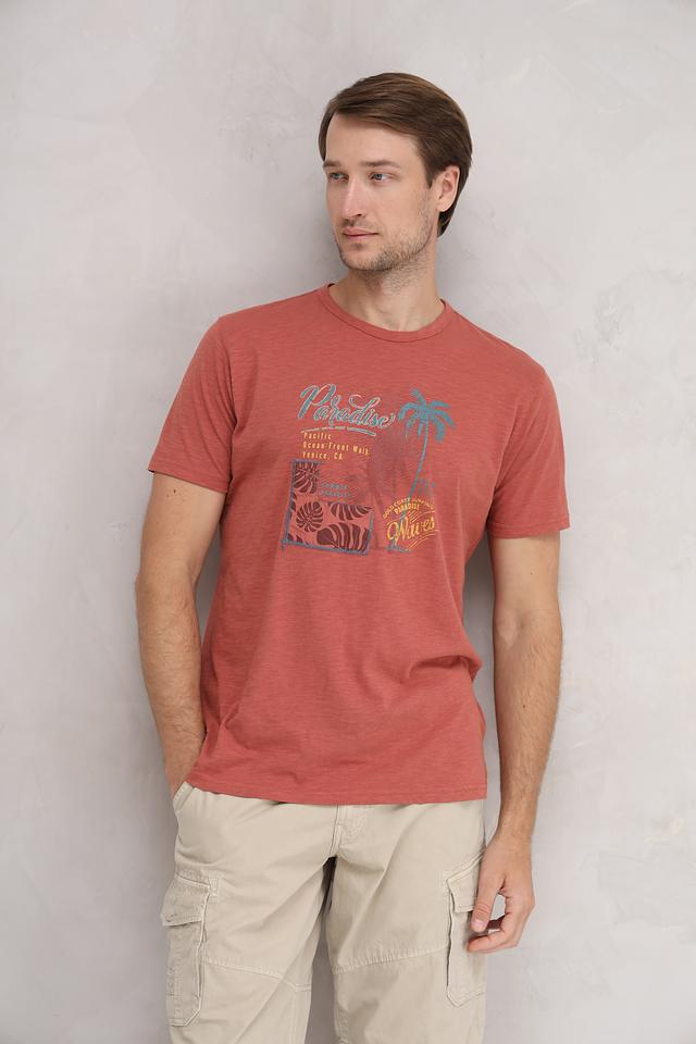 Мужская футболка Sea Barrier терракотового цвета с ярким принтом в стиле Paradise. Изготовлена из 100% хлопка, обеспечивающего комфорт и воздухопроницаемость. Отличный выбор для повседневного образа. Состав: хлопок 100%