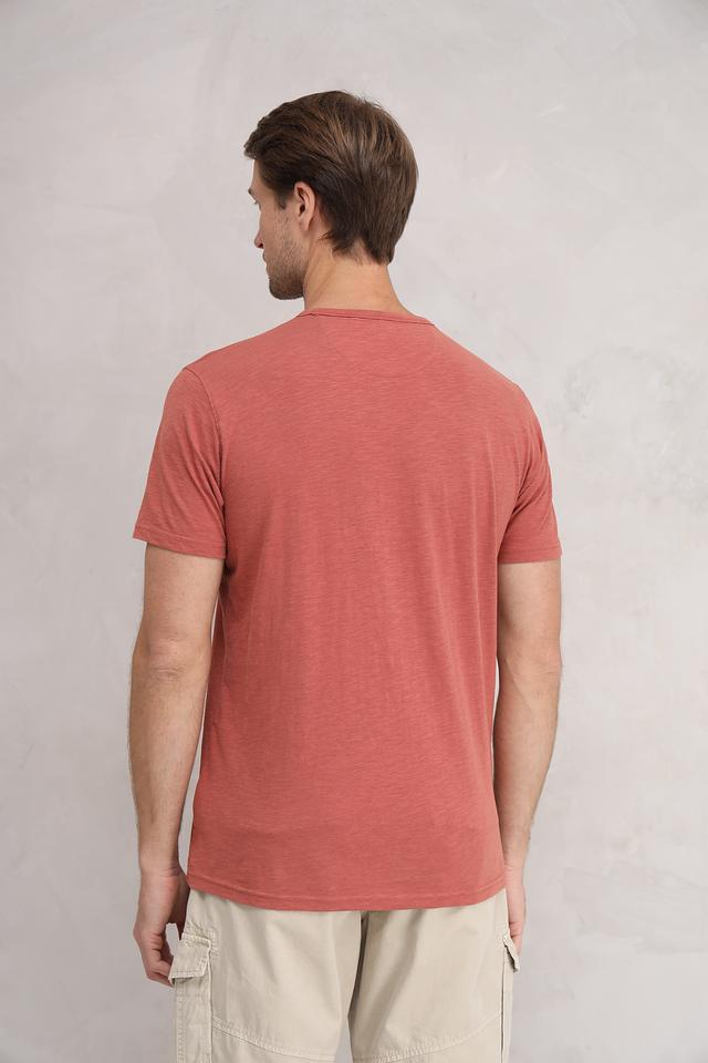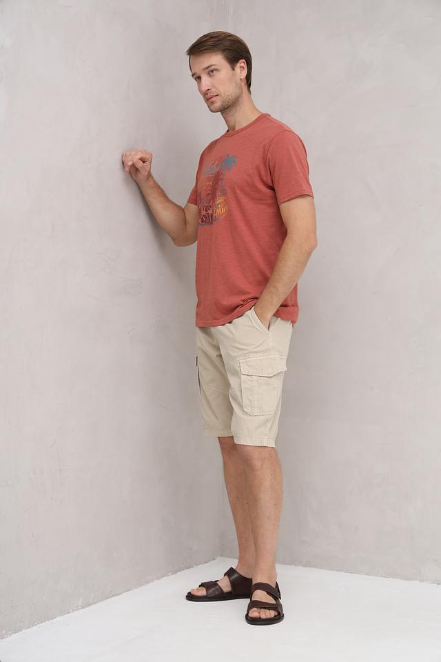 Цвет футболки – терракотовый, который отлично сочетается с различными оттенками. Эта футболка идеально подойдет для создания повседневных образов в стиле casual. Она прекрасно сочетается с джинсами, шортами и чиносами.