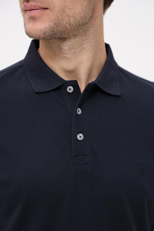 Поло выполнено из высококачественного 100% хлопка, который приятен к телу и хорошо пропускает воздух. Тёмно-синий цвет делает эту модель универсальной и легко сочетаемой с другими элементами одежды.
