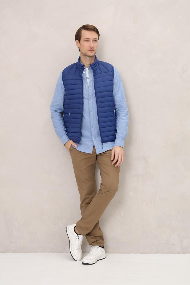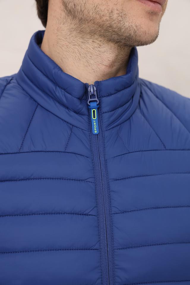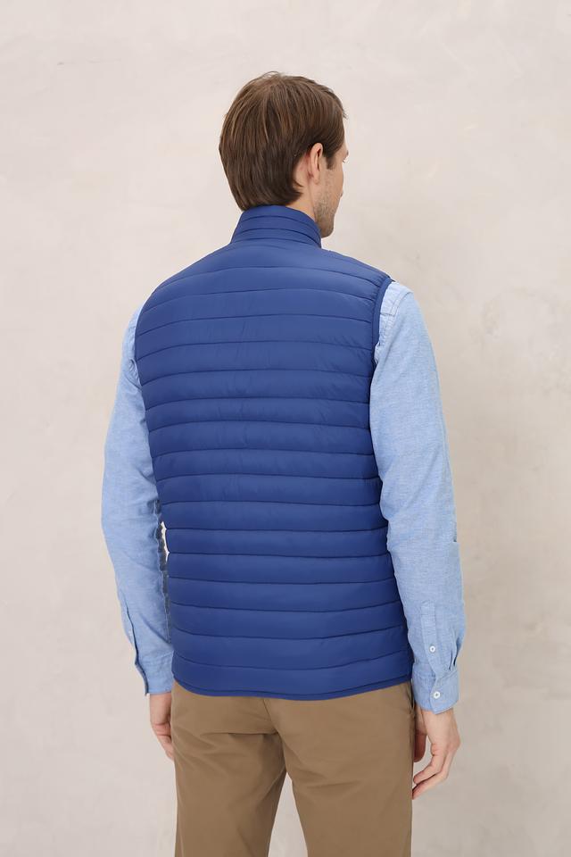 Стеганая текстура придает жилету современный вид, а синий цвет делает его универсальным дополнением к любому гардеробу. Застежка-молния обеспечивает удобство надевания и снятия, а воротник-стойка защищает от ветра.