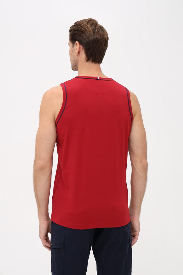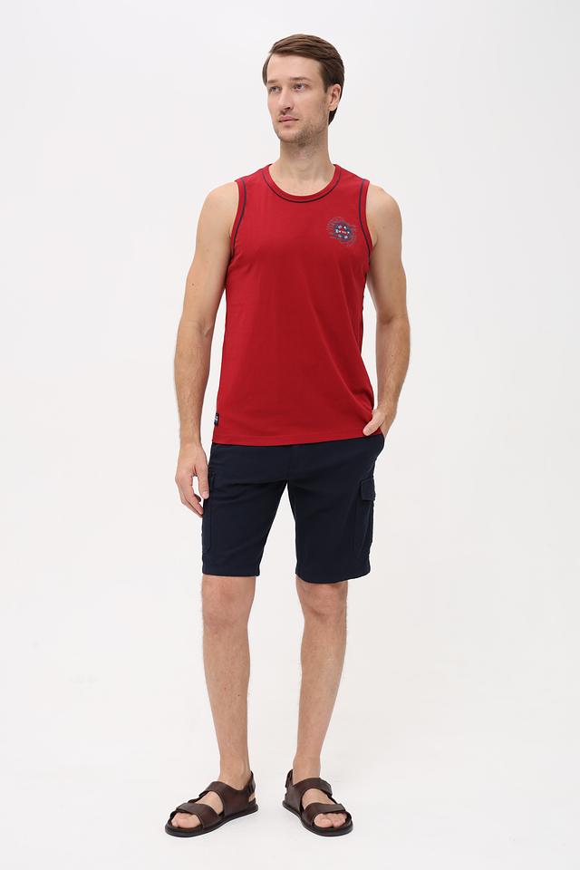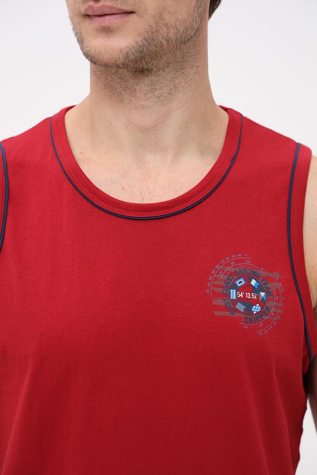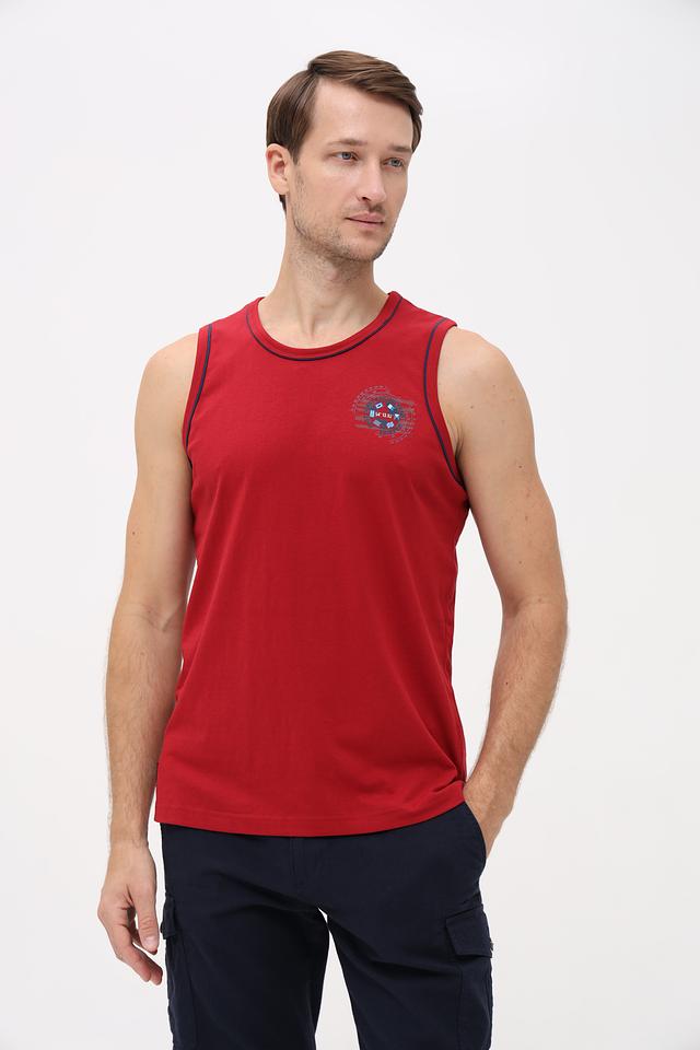 Мужская футболка-майка Sea Barrier красного цвета с круглым вырезом и графическим принтом на груди. Изготовлена из 100% хлопка, обеспечивающего комфорт и воздухопроницаемость. Состав: хлопок 100%