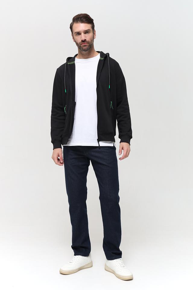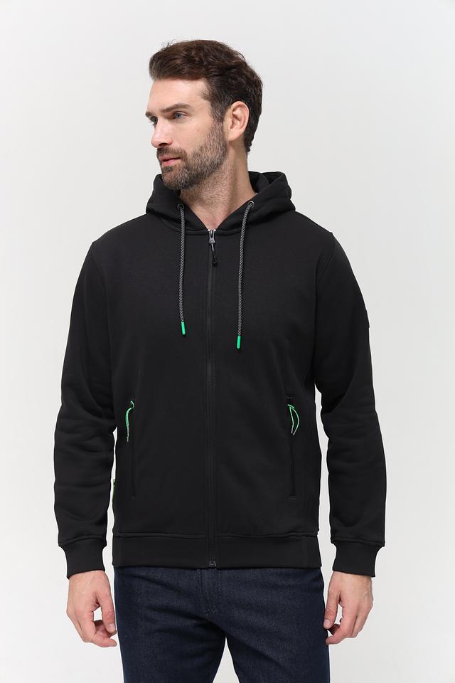 Чёрный кардиган Sea Barrier на молнии – стильная и удобная модель для повседневной носки. Изготовлен из хлопка с добавлением полиэстера, имеет капюшон и боковые карманы. Состав: хлопок 70%, полиэстер 30%