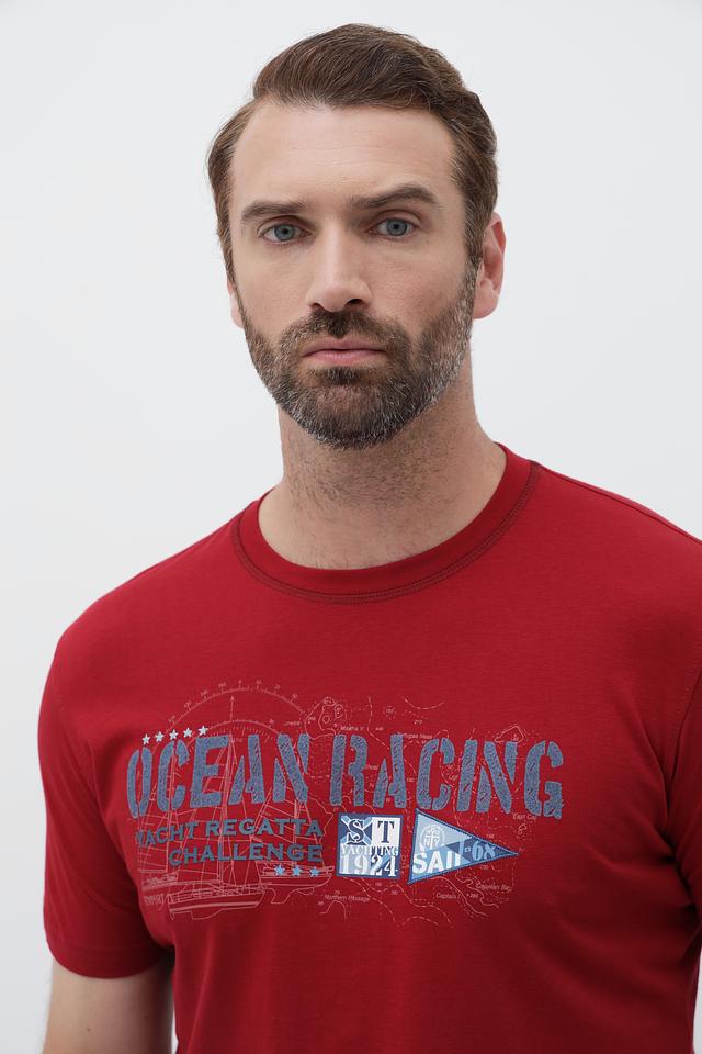 Мужская футболка Sea Barrier красного цвета с ярким принтом "Ocean Racing". Изготовлена из 100% хлопка, обеспечивающего комфорт и воздухопроницаемость. Отличный выбор для повседневной носки. Состав: хлопок 100%