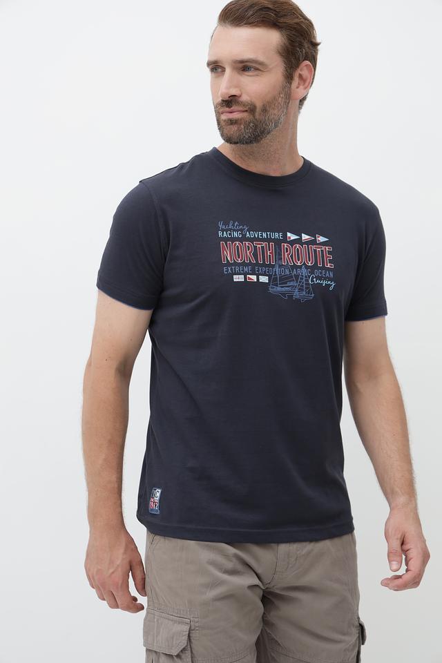 Мужская футболка Sea Barrier тёмно-синего цвета с ярким принтом на груди. Изготовлена из 100% хлопка, обеспечивающего комфорт и воздухопроницаемость. Состав: хлопок 100%