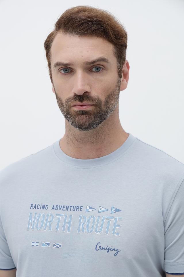 Голубая футболка Sea Barrier с оригинальным принтом "North Route" станет отличным дополнением к вашему гардеробу. Изготовлена из 100% хлопка, обеспечивая комфорт и воздухопроницаемость. Состав: хлопок 100%
